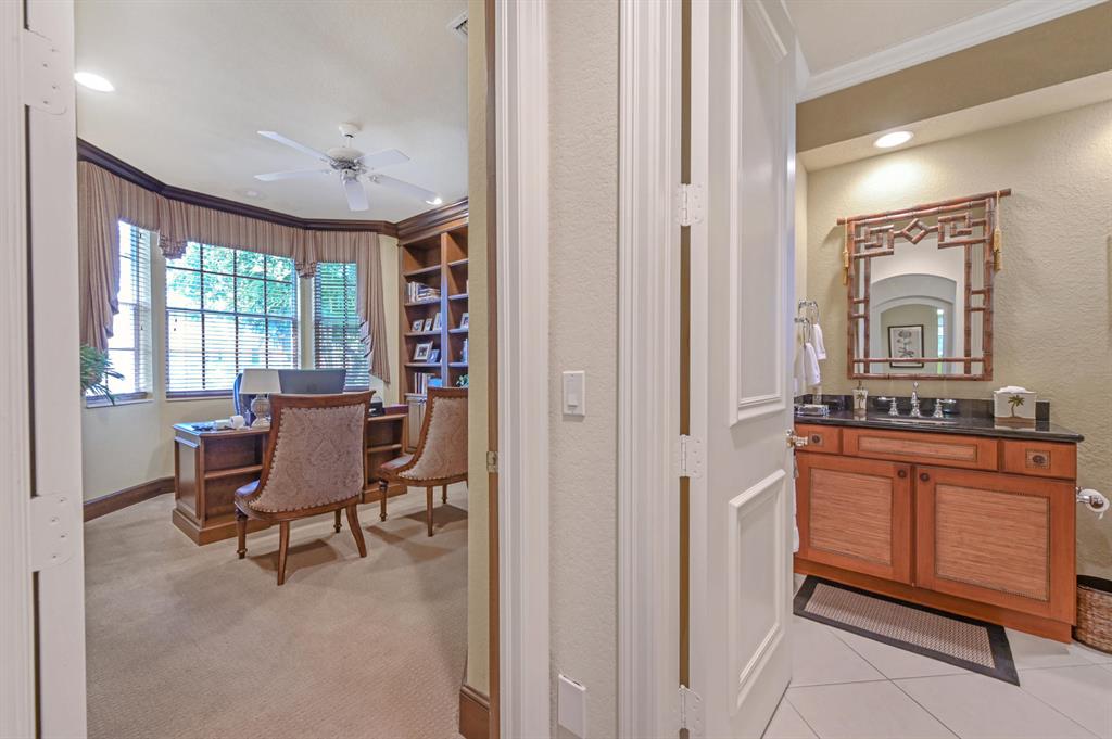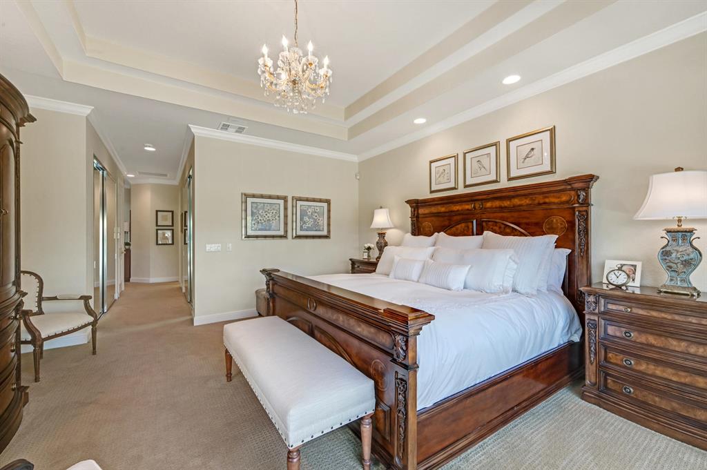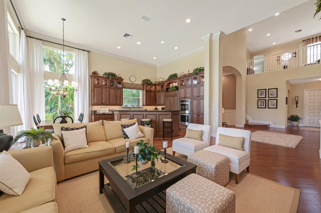 Enjoy country club living at its best in this move in ready home comprised of 4 bedrooms, 4 full baths, loft and 2 car garage on a gorgeous lakefront lot. Upon entry you will be captivated by the soaring 21 foot high ceilings. This is the perfect home for entertaining as the living room and dining room flow right into the open kitchen and family room. The gourmet kitchen boast, stainless steel appliances and tons of storage with pull out cabinets. Tons of natural light with sunlight coming through the wall of sliding glass doors and windows. Enjoy serene lake views, take a swim in the pool or relax under the covered seating areas.