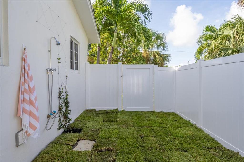Light, bright and charming coastal Florida ranch home one block from the Intracoastal. Experience open plan living with abundant natural light on one of the Southend's best streets. Not to be missed is the home's prominent plumeria tree, pergola covered patio, outdoor shower and brand new privacy fence accented by completely re-imagined landscaping. Notable interior features include a primary suite with full bath and walk-in closet, built in storage throughout, impact windows & doors and spacious two car garage. Lovingly cared for and immaculately maintained, this home is turnkey and ready to be enjoyed for years to come. Close to area beaches, I95 and Palm Beach International Airport.