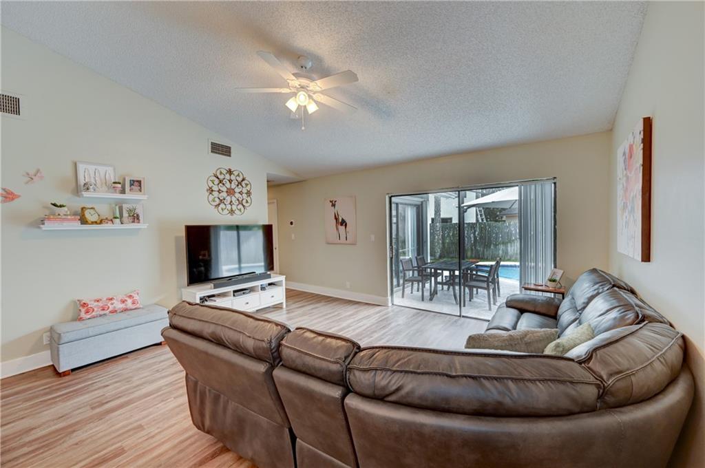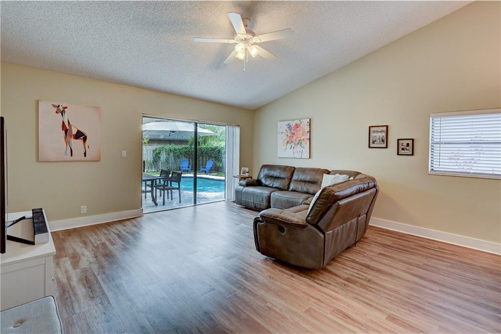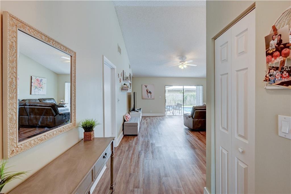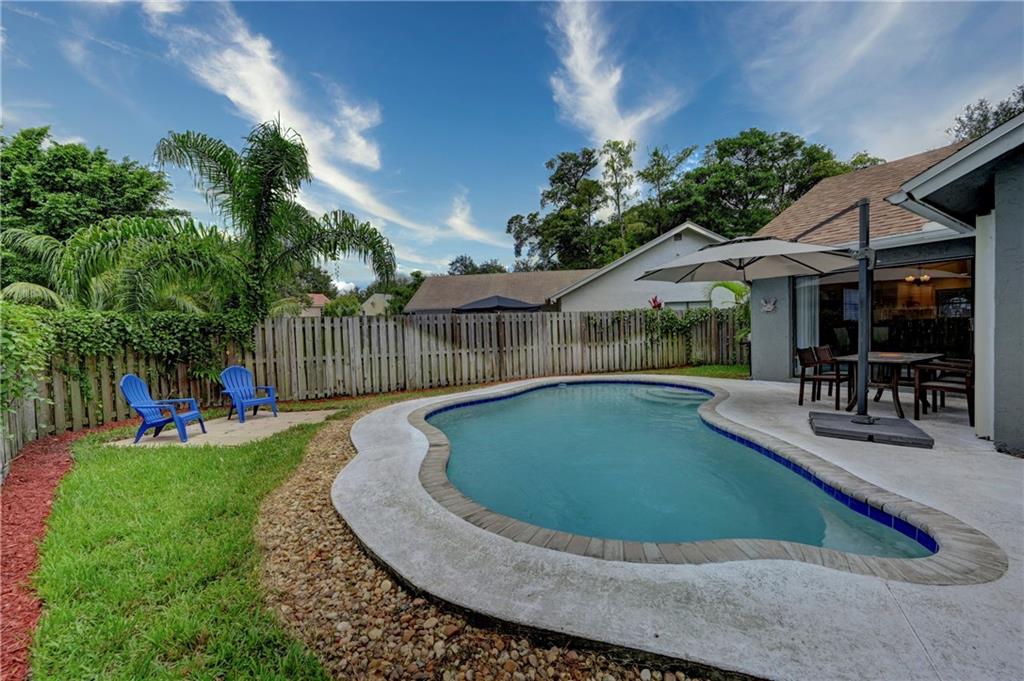 Beautifully remodeled 3 bedroom, 2 bath pool home centrally located in The Crossings. This home has an updated kitchen with Granite countertops and Stainless Steel appliances. Other features include newer wood flooring in the living room and all bedrooms (No carpet), Nest thermostat, Accordion shutters and fenced back at the end of a quiet cul-de-sac. No HOA fees.