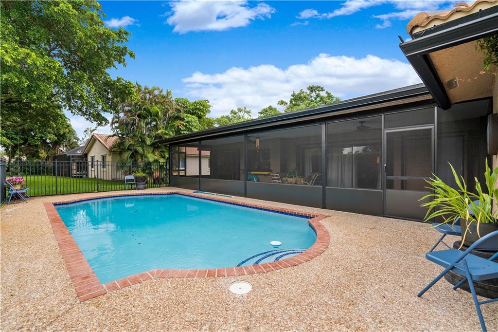 SOME OF THE MANY UPGRADES AND UPDATES IN THIS BEAUTIFULLY MAINTAINED, SPACIOUS HOME ARE:BRAND NEW POOL RESURFACING,WOOD LOOK TILE THROUGHOUT THE MAIN AREAS AND THE FIRST BEDROOM, NEWER WASHER/DRYER,KITCHEN SINK, ,DISPOSAL,LEAF FILTER GUTTERS WITH A LIFETIME GUARANTEE. IMPACT WINDOW OVER THE KITCHEN PASS THROUGH, ACCORDION SHUTTERS FOR ALL OTHER WINDOWS,HURRICANE RATED GARAGE DOOR. A/C UNITS SERVICED REGULARLY, SPACIOUS AND FENCED BACKYARD. NO HOA! A MUST SEE!