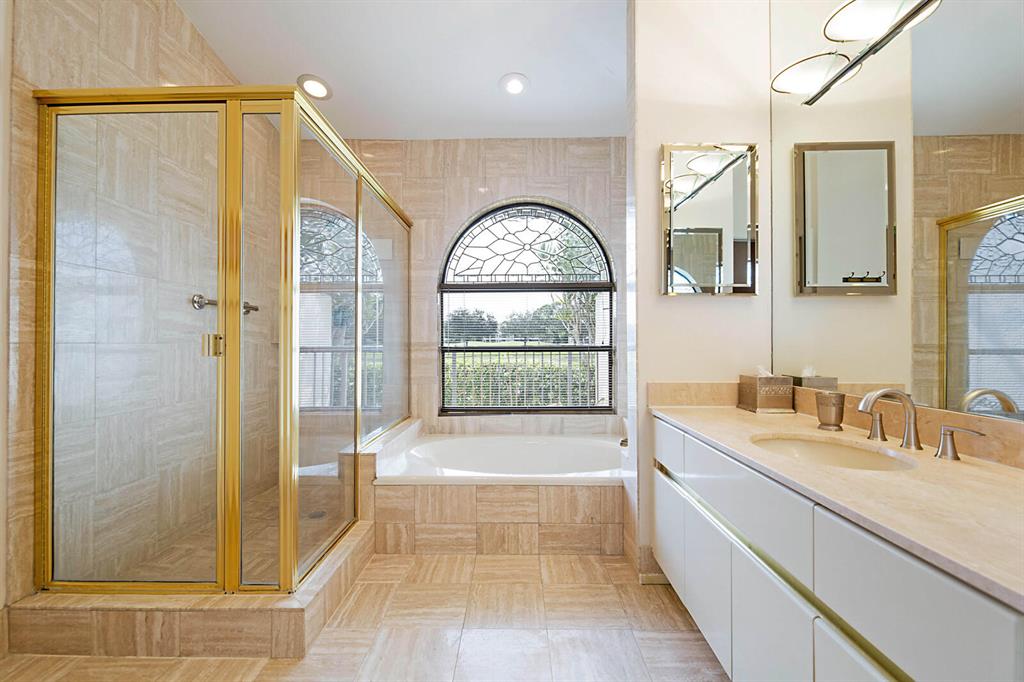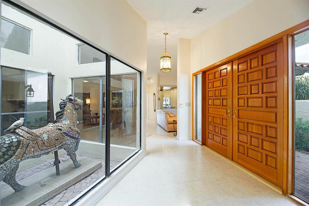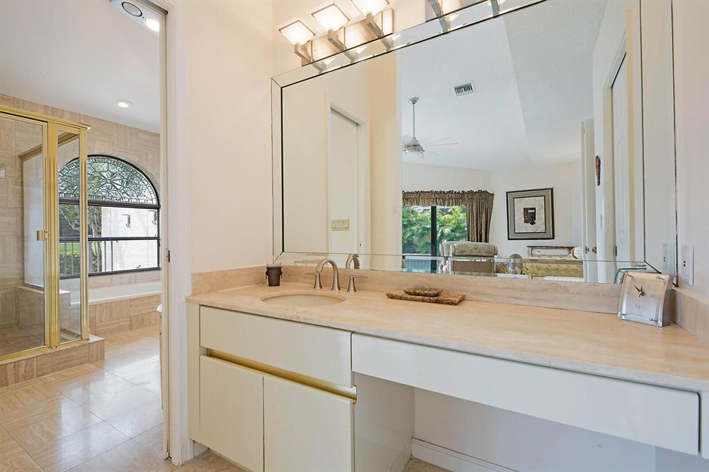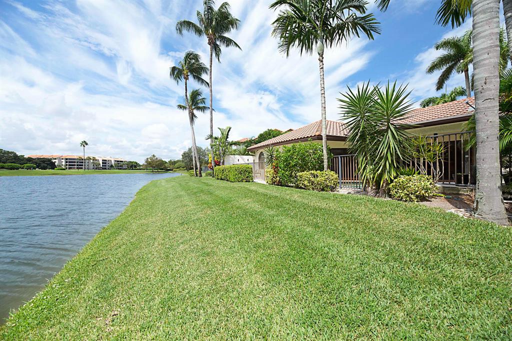 This remarkable 3 bedroom + convertible den, 2.5 bath pool home offers stunning waterfront and golf course views from the private, fenced backyard! Located in the highly desired Boca Pointe community, this upgraded home offers open living spaces full of stylish architectural detail, neutral ceramic tile throughout, and a large, open kitchen with breakfast bar, granite counters, recipe desk, cook island, sub-zero fridge, wall oven and endless storage and counter space. The spacious master bedroom overlooks the lake and golf course and features a large en-suite bathroom with separate shower and tub. The fenced, private and covered patio is an entertainers paradise as it overlooks the pool, lake and green golf course.