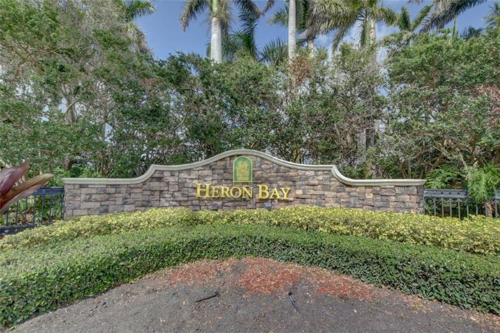 Rare to market! Beautiful and well maintained 2 story townhome located in desirable Tuscany at Heron Bay. Spacious at just over 2200 Sq Ft with 20’ volume ceilings. 3 Bedrooms upstairs, 2 1/2 Bath and highly sought after two car garage! Large open kitchen featuring a breakfast bar with gorgeous granite countertops. Stunning wood floors in main living areas downstairs and carpet upstairs. The master bedroom has two large walk in closets and recently updated master bath. This quite lot backs up to a wooded preserve and perfect for enjoying your morning coffee on your private covered patio. Maintenance includes roof repairs AND roof replacement! Tuscany has its own exclusive pool to enjoy plus all the amenities of Heron Bay including 24-hour manned gate and patrol.