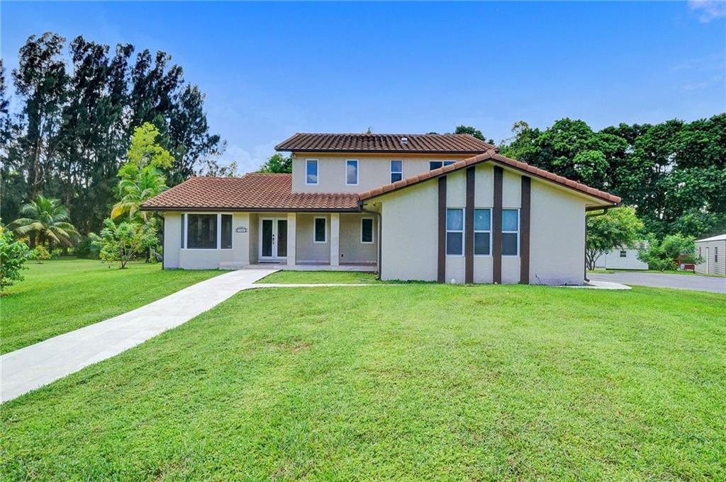 ***PRIME LOT IN SUNSHINE RANCHES!!!*** 5 BEDROOM*3 BATHROOM COUNTRY ESTATE ON APPROX 1.79 ACRES W/APPROX. 3800 TOTAL SQ FT ON A CUL-DU-SAC W/CITY WATER* CIRCULAR DRIVE W/GATED ENTRY FEATURING MARBLE THROUGHOUT THE LIVING AREAS AND WOOD FLOORS IN BEDROOMS*2 BEDROOM LOCATED ON THE 1ST FLOOR. SPACIOUS FORMAL LIVING AND DINING RM* KITCHEN FEATURING UPDATED CABINETRY*GRANITE COUNTERTOPS, STAINLESS STEEL APPLIANCES, W/BREAKFAST BAR*SPACIOUS FAMILY ROOM*NEW INTERCOM SYSTEM* EXPANSIVE PATIO OVERLOOKING POOL AND POND*IMPACT WINDOWS/FRENCH DOORS*ROOF 2017*TWO ZONE A/C 2019*SMART TANKLESS WATER HEATER* SOLAR PANELS* ELECTRIC BILL ONLY $9.00 MONTHLY*VARIETY OF MANGO TREE'S (30)*VOLUNTARY HOA