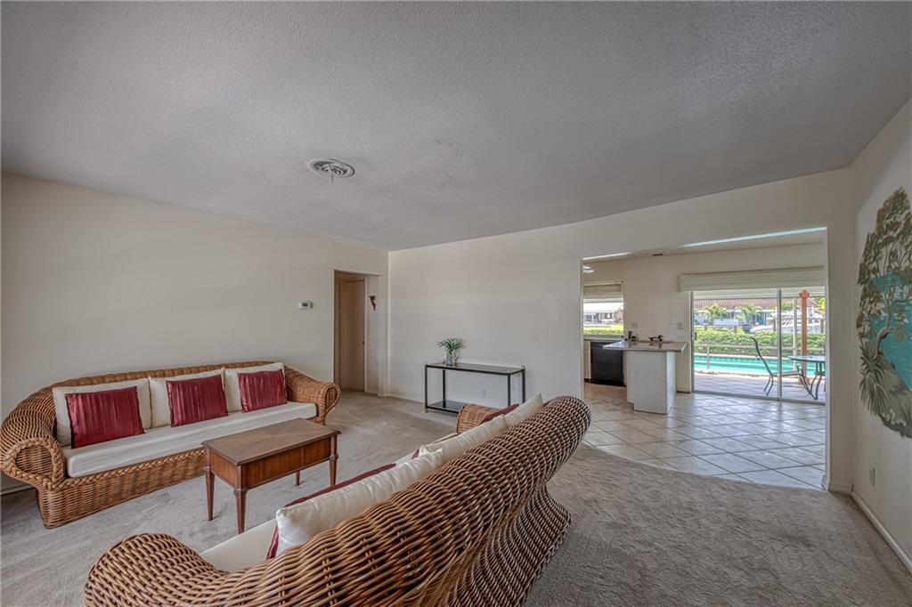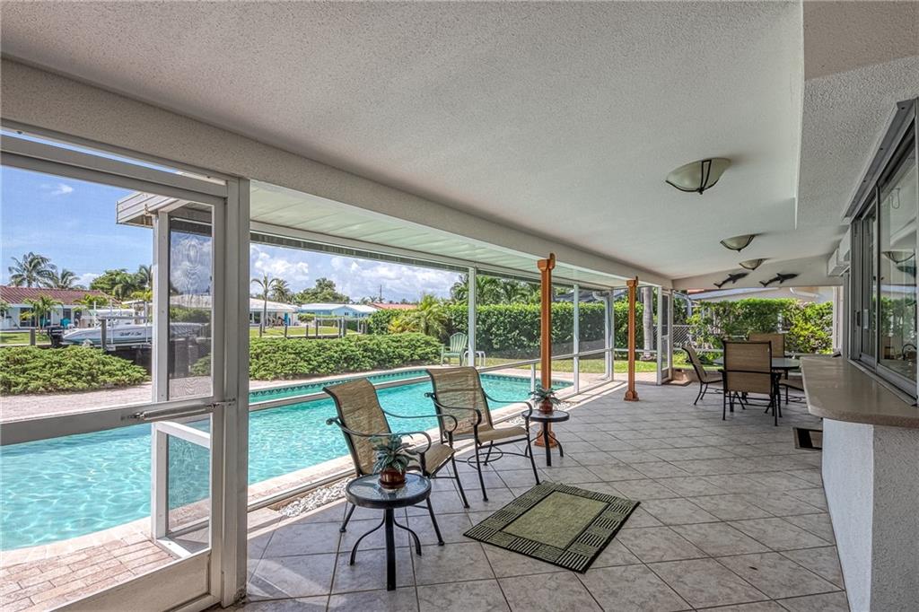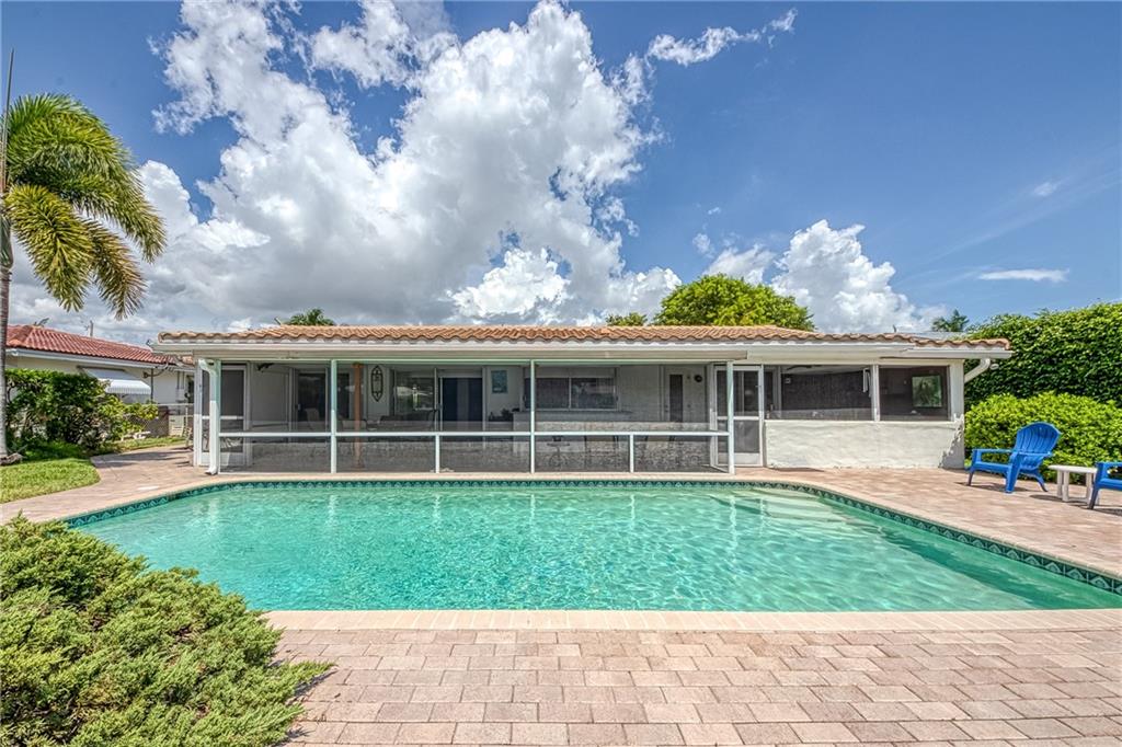 This bright and attractive 4/2 BD/BA pool home is located on the water and comes equipped with a small dock ready to dock your boat for quick access to the water! Located in the beautiful residential area of Cypress Island, this home features tile, carpeting, and ceiling fans throughout, a spacious kitchen with a great view of the pool and the covered entertainment area. The Master Bedroom also offers a great view of the pool area, a large walk in closet and a renovated Master Bath. The second bathroom has a shower and has also been renovated. The large, covered back porch area overlooking the pool is an entertainer's dream featuring an outside kitchen and plenty of room to entertain, relax, and enjoy your sparkling large pool.