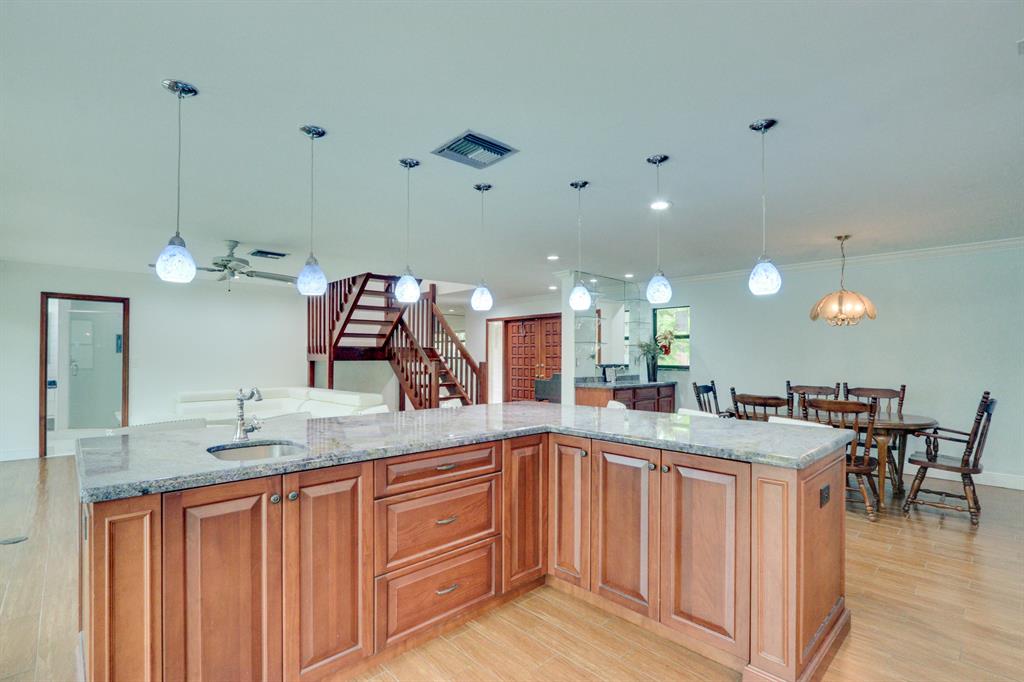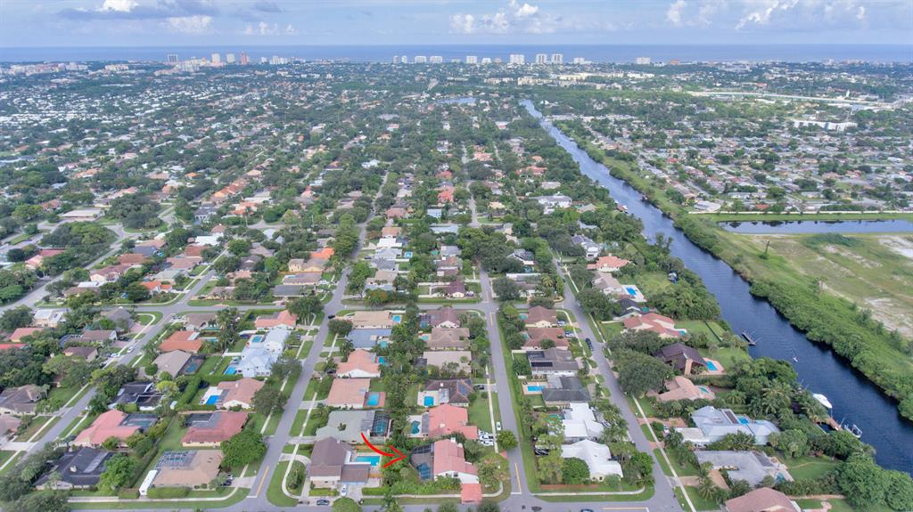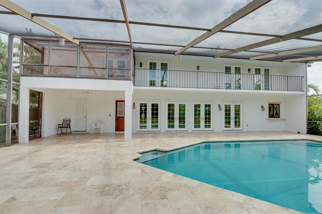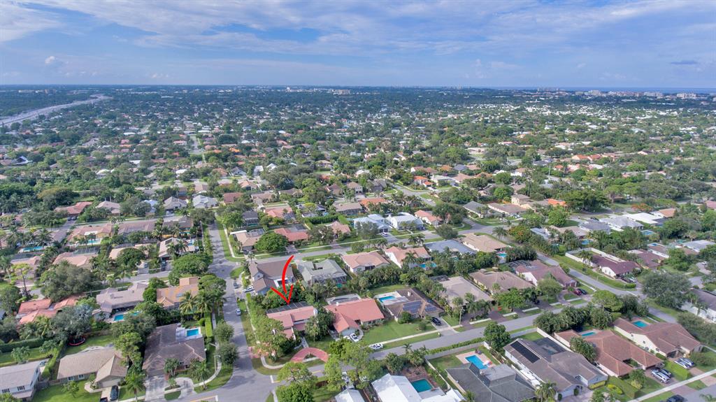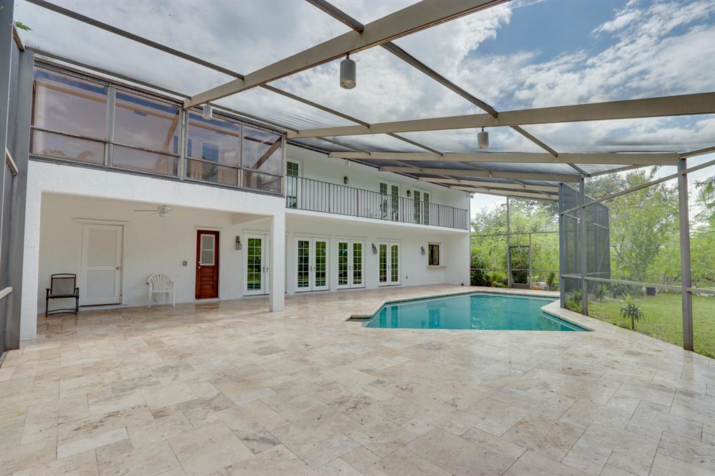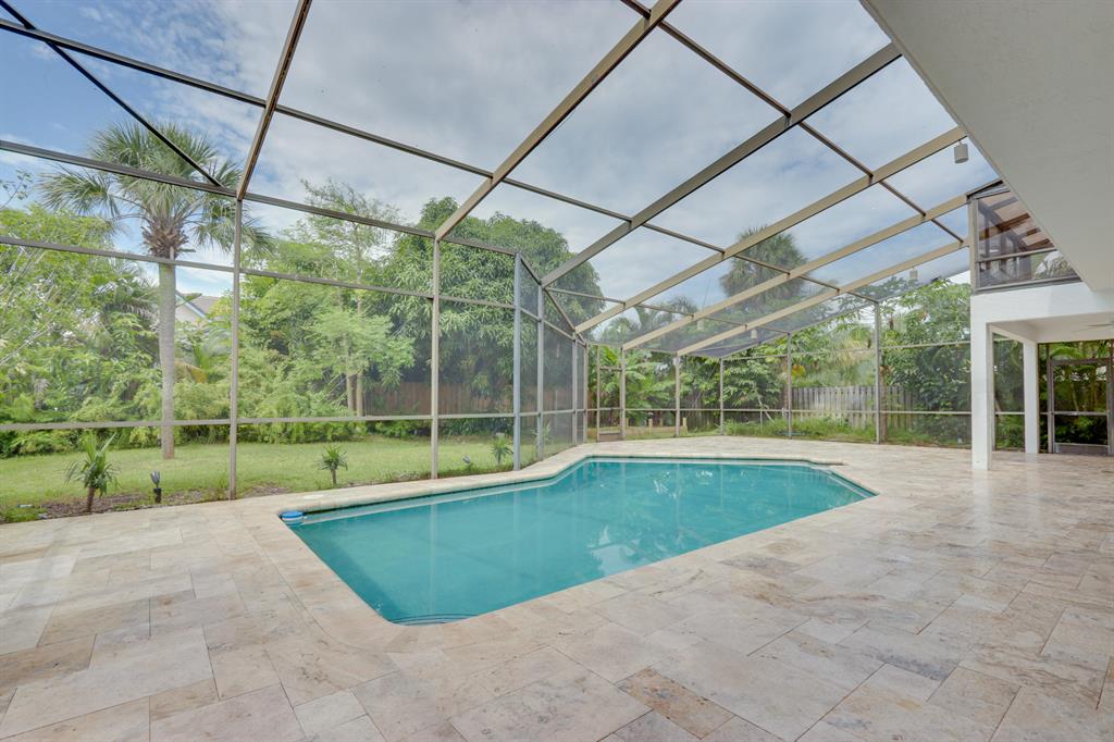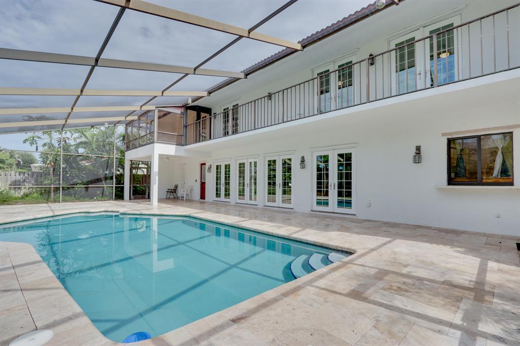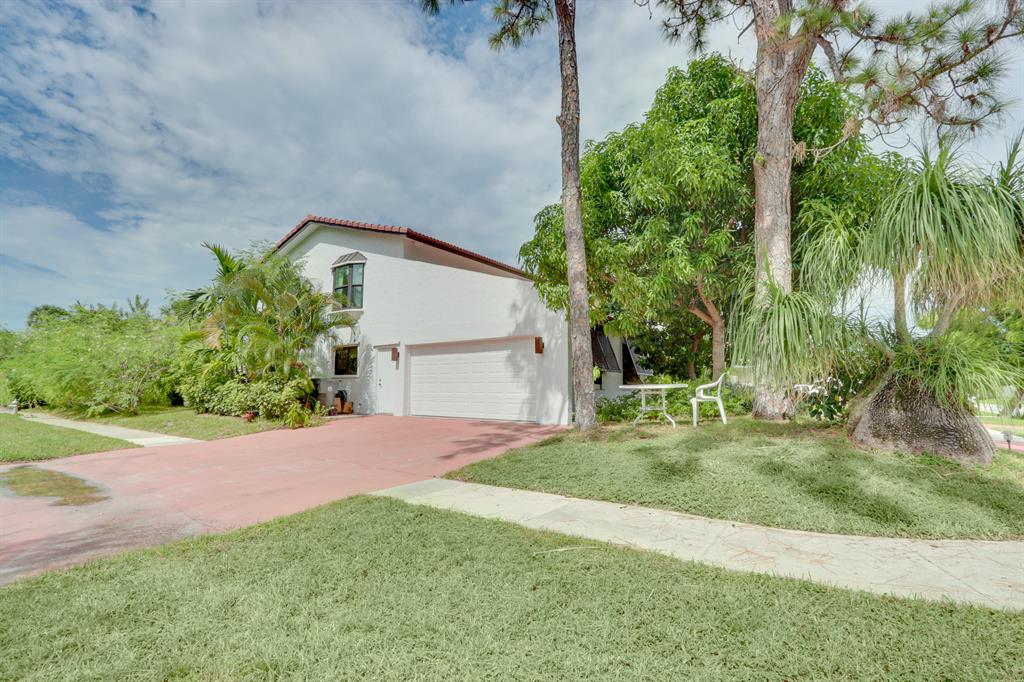 Lovely Two Story on great corner lot! 4 bedrooms/3 baths ~ Double Door Entry leads to Large Family Room with wood burning stone fireplace ~ Large Kitchen with breakfast island to seat 8, Stainless Steel Appliances ~ (8) French Doors with High Quality Impact glass & Windows ~ Beautiful Travertine Patio & Free form pool ~ 2 commercial grade AC units ~ Barrel Roof ~ Espresso wood look tile upstairs & down ~ Balcony off of master & three bedrooms overlook pool! Storage room ~ plenty of parking with side loading 2 car garage & circular driveway ~ Utility room with laundry tub & lots of storage. Four blocks to Pine Breeze Park ~ All Top ''A'' Schools, close to Beaches, I95, Restaurants, Shopping & Mizner Center ~ shows great!