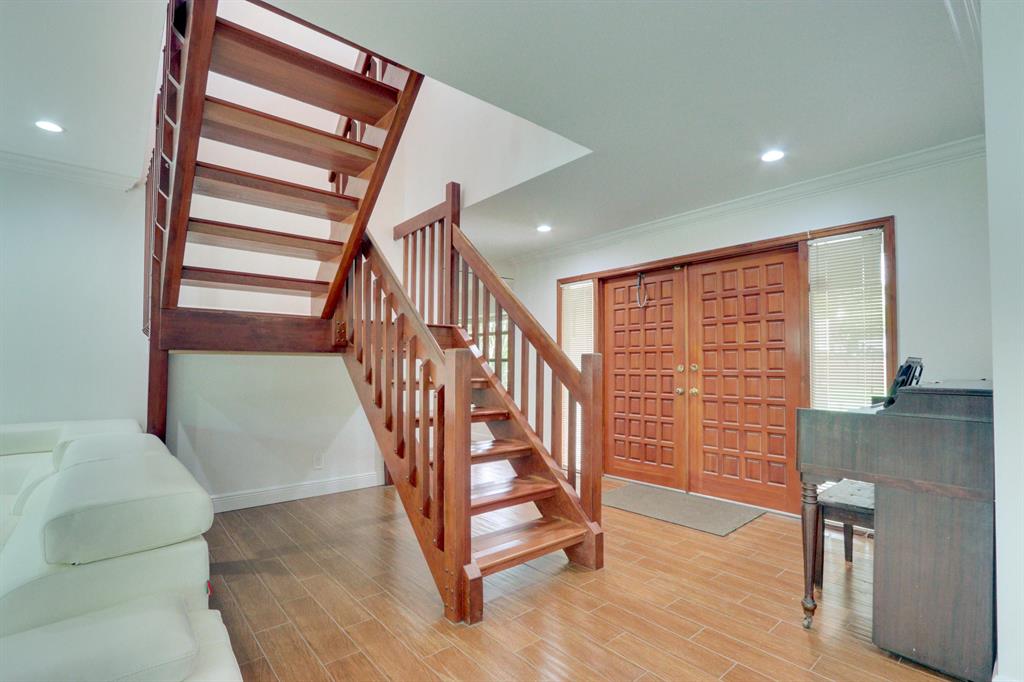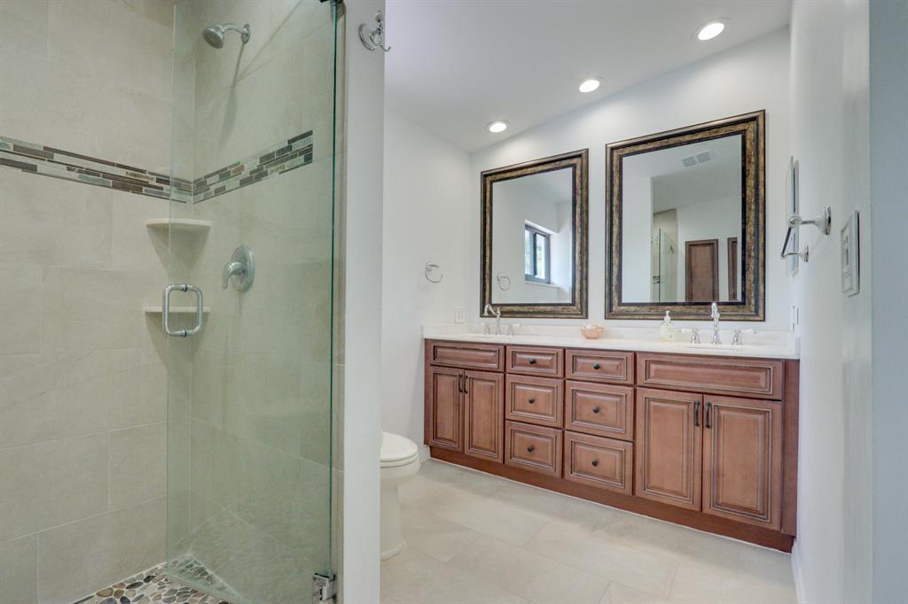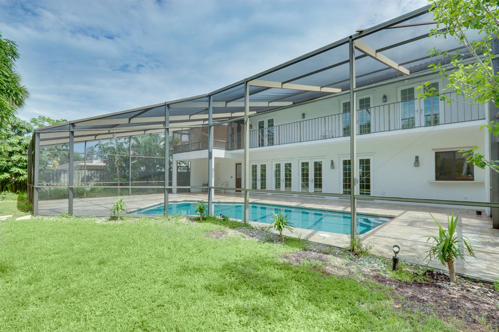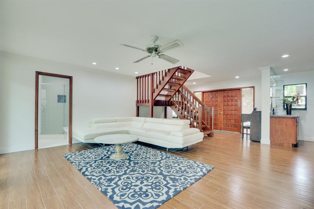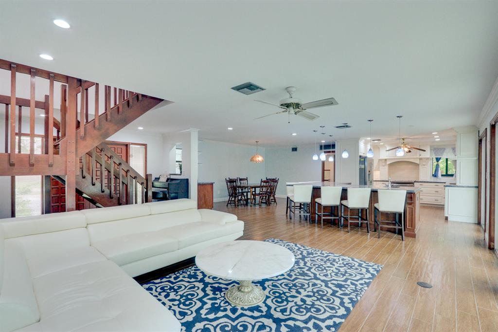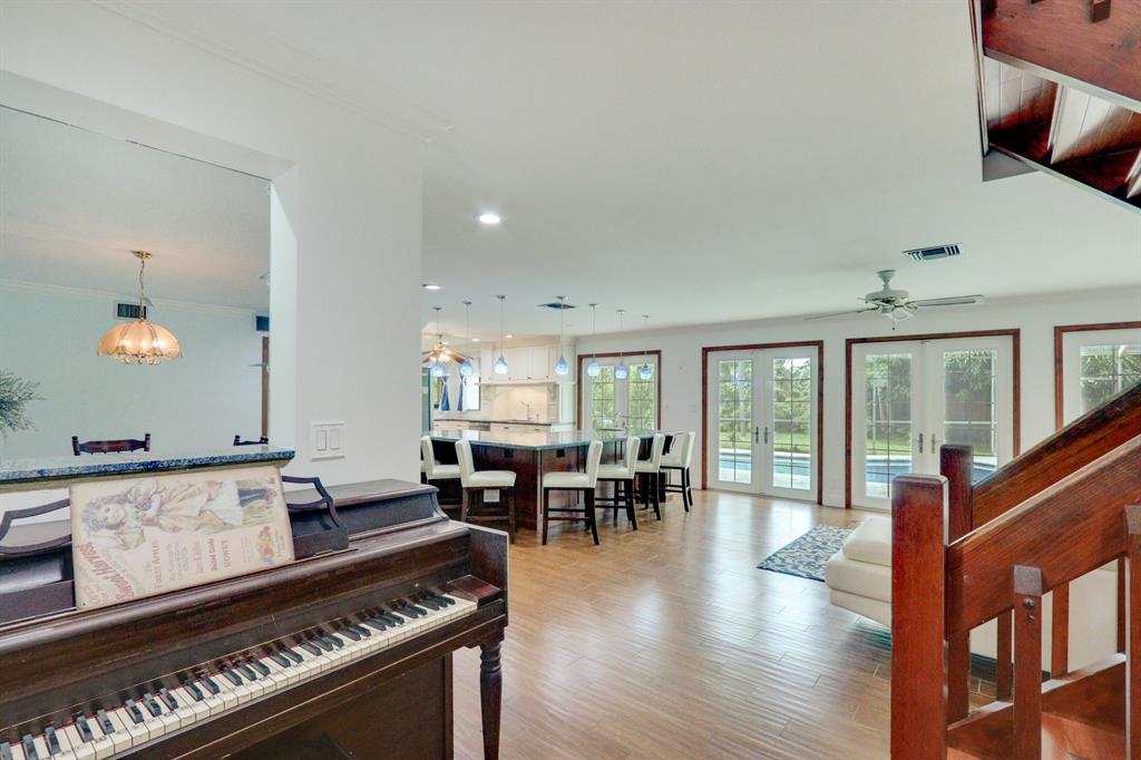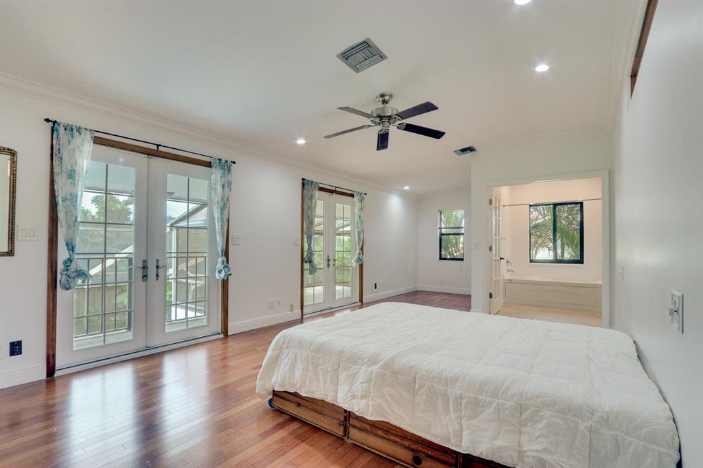 Lovely Two Story on great corner lot! 4 bedrooms/3 baths ~ Double Door Entry leads to Large Family Room with wood burning stone fireplace ~ Large Kitchen with breakfast island to seat 8, Stainless Steel Appliances ~ (8) French Doors with High Quality Impact glass & Windows ~ Beautiful Travertine Patio & Free form pool ~ 2 commercial grade AC units ~ Barrel Roof ~ Espresso wood look tile upstairs & down ~ Balcony off of master & three bedrooms overlook pool! Storage room ~ plenty of parking with side loading 2 car garage & circular driveway ~ Utility room with laundry tub & lots of storage. Four blocks to Pine Breeze Park ~ All Top ''A'' Schools, close to Beaches, I95, Restaurants, Shopping & Mizner Center ~ shows great!