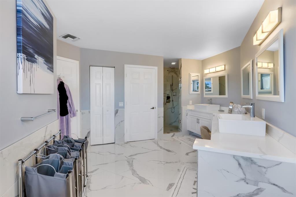 This one will not last!! Beautiful, fully renovated 5 bedrooms, 3 bath, pool home, with almost $200K in recent upgrades! Step inside to the freshly painted main floor which is an open concept layout that includes a formal living area, formal dining area, eat in kitchen, family room, laundry room, one bedroom and one full bath. You will notice a modern style kitchen, with new white quartz counter tops, energy efficient stainless-steel appliances, 32 inches porcelain tiles, new custom window treatments, and stairway. You will also notice that the popcorn has been removed, and that there are new lightings, fans, baseboards, and chandelier. In addition, all the shower doors are custom made. Upstairs you have new floors and quartz in bathrooms.