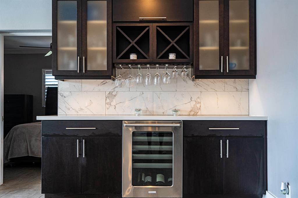 One of a kind 3 bedroom/2.5 bathroom modern home in desirable Camino Gardens, the entire backyard lot is comprised of artificial grass outside and marble pavers with slate stone columns, newly surfaced pool with custom Hawaiian Blue color, multicolor led lights, jacuzzi with waterfall and new back splash tile throughout. Rain censored sprinklers, Outdoor kitchen with quartz counter tops, 42 inch built in ''Twin Eagles'' grill and slate stone exterior facade, custom Atlas Concorde Italian porcelain gray wood tiles, and all SS Electrolux appliance including full size convection double oven, refrigerator, wine refrigerator, gas Stove top white quartz counter tops , to many extras to list, will not last, contact James for your preview