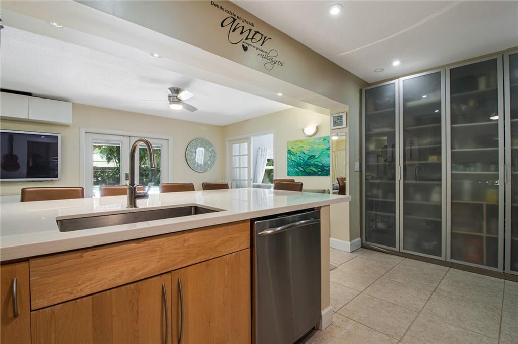 This home is full of Croissant Park charm! Great curb appeal w/winding paths to front door + side yard, lush landscaping, front porch w/triple impact windows. New solar panels. Driveway w/shade sail. Foyer w/window. Large bright living rm. Kitchen is open to family room w/breakfast bar- wood cabinetry, w/large pulls, quartz counters, light fixture w/dual fans, stainless appliances + large pantry w/frosted glass doors. Family rm is large w/floating wall unit + double french door to covered patio. There are 3 nice sized bedrooms- the largest has dual closets. The fenced backyard is truly a tropical oasis with covered brick paver patio, professional designed landscaping, lighting, winding paths, sitting areas for bbq pit, all around a beautiful pool. Separate laundry rm. New PVC plumbing.