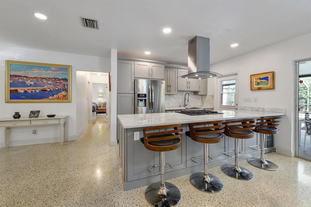 Charming East Boca home on an oversized corner lot. This home has been beautifully renovated and is ready for the pickiest buyer. This home features an open floor plan with terrazzo floors, a stunning kitchen complete with marble countertops and new appliances, a newly remodeled bathroom, circular driveway, covered patio and a utility shed. Enjoy your Florida days in the recently resurfaced heated pool and spa with complete privacy. Excellent location with A rated schools. This home is not to be missed.