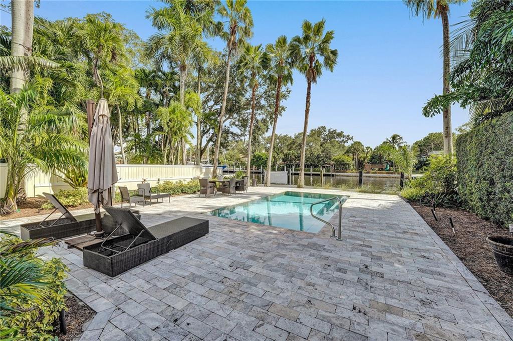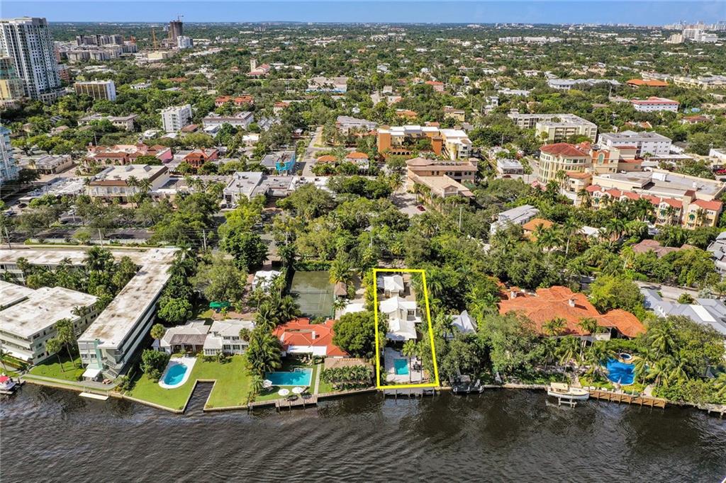 Location, Location. Waterfront home nestled in between the New River and Las Olas Blvd. This tropical and gated home combines Old Florida charm with a Key West ambiance. Included is a separate guest cottage, perfect for visitors or potential income. Main house features 3 bed, 2.5 bath, gorgeous espresso wood floors and jaw dropping cathedral ceilings. Dual master suites, one on the ground floor and one upstairs. The house is complete with a classical wrap around porch and garage. Enjoy 50' of prime water frontage with a resort like backyard featuring an updated pool, travertine patio and dock. This highly desirable property is also well suited for new construction. 11,000 Sq ft. Don't miss this opportunity one of only 7 properties located directly on the New River.