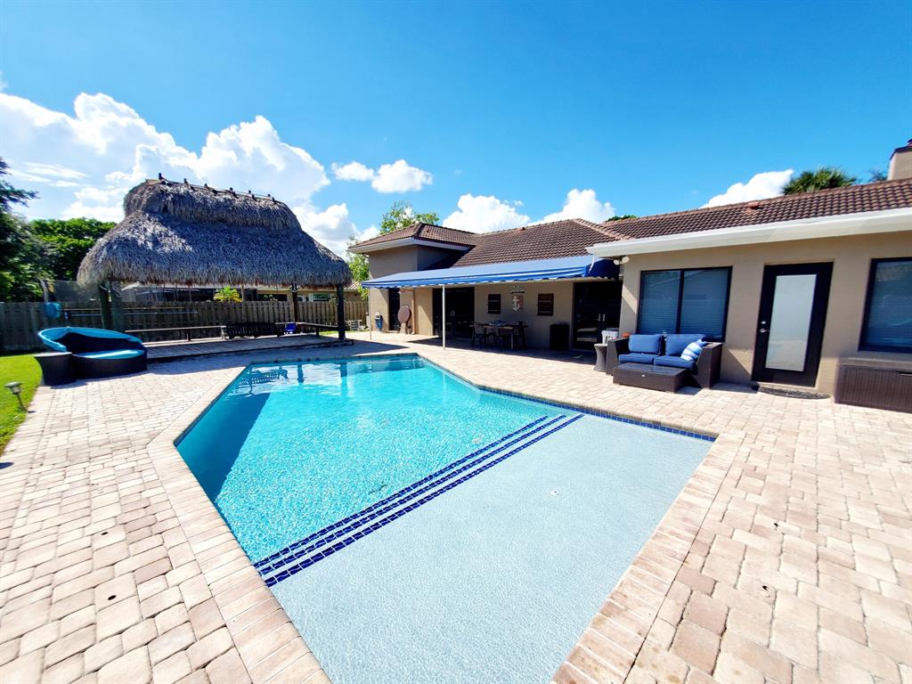 BACK ON THE MARKET One of a kind Home with extra-large lot, tiki hut pool, paver driveway, and garage at an affordable price! Your totally renovated home in the center of Coral Springs is waiting for you to enjoy all the space you need! 4 bed 3.5 bath, with an indoor parking space for your full size 13' tall by 40'' deep RV or 7 cars in your garage, this home is the perfect size for the car, boat, or RV lover. And if that's not enough, the resort size tiki hut, outdoor kitchen, and pool area with a full separate cabana bath will help you cool down after a long day working in the garage. Indoors you will be greeted by a massive family room and kitchen with large living room. vaulted ceilings, fireplace, and custom barn doors. This 4 bed home boasts a 30ft master bedroom and extra-large