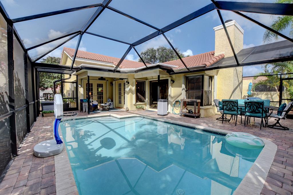 Beautifully renovated 3BR, 2BA,1Sty, pvt. pool home in the highly desirable Village of 'Laguna at Mission Bay'. This home features a newly remodeled Master Bedroom & Bath (2019), full hurricane protection (2019), updated kitchen w/granite counters and S/S appliances, updated Spanish-tile roof, dome screen enclosed salt water pool with updated equipment, updated Trane central air-conditioning (w/10YR Warranty 2016), separate family room with real wood burning FPL in addition to numerous updates and upgrades throughout the home. Enjoy the Laguna/MB Club lifestyle without the Country Club fees. Access to many amenities; Resort style community pool, hot tub, fitness, patio bar, plygrnd, tennis and receive basic cable, lawn care & irrig. as well. Walking distance to local shops and restaurants.