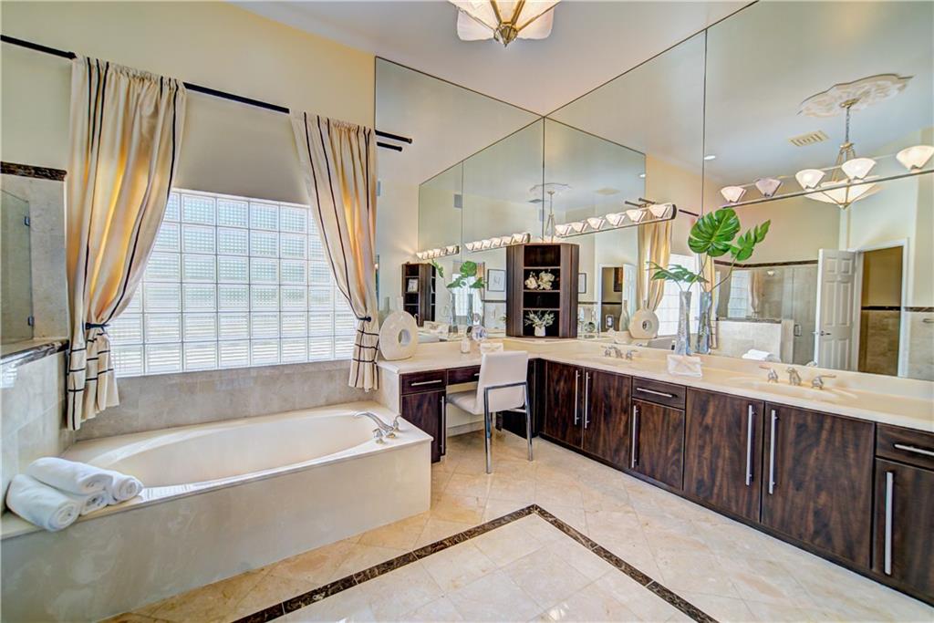 Move-in ready courtyard home with total, complete privacy from all of your neighbors in highly sought after Heron Bay/Long Cove. All impact windows & doors allow for natural light and views of your pool/patio area from every room! This home sits on a 1/4+ acre corner lot and has plenty of room for your kids/pets to play inside and out. Elegant white marble floors w/granite inlays, 12' ceilings throughout living areas, kitchen w/new stainless steel Bosch appliances and granite counters. Relax peacefully in your large master suite which is separate from all other bedrooms or unwind in the hot tub. All secondary bathrooms have been renovated w/marble and granite for a modern, luxurious look. Enjoy the luxury of your guest house - perfect for in-law suite, virtual school classroom or office!