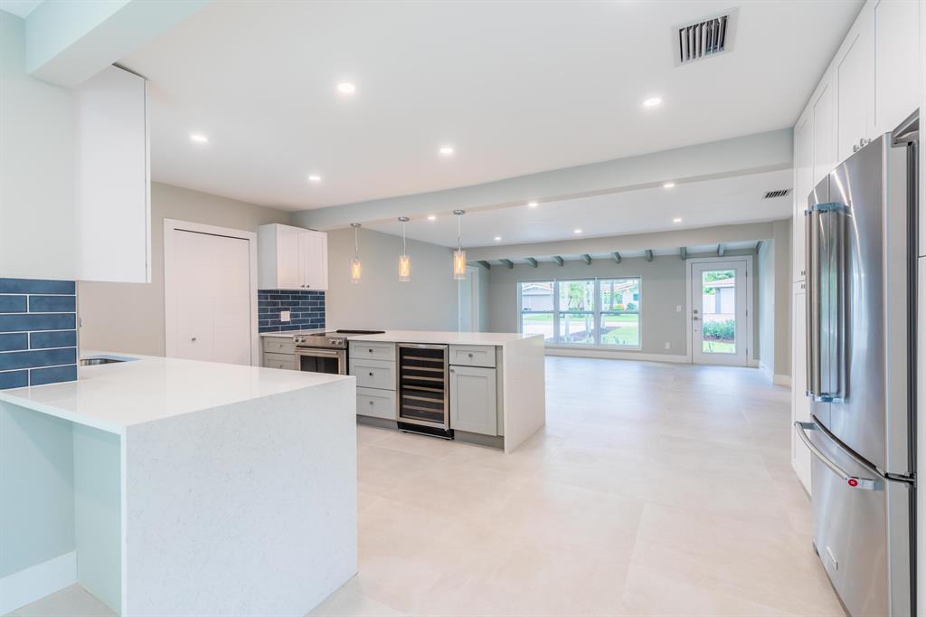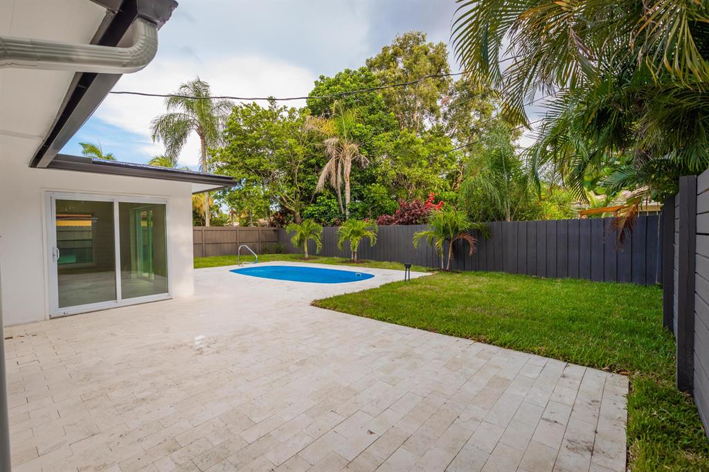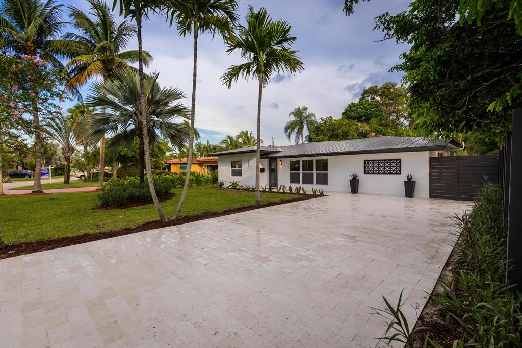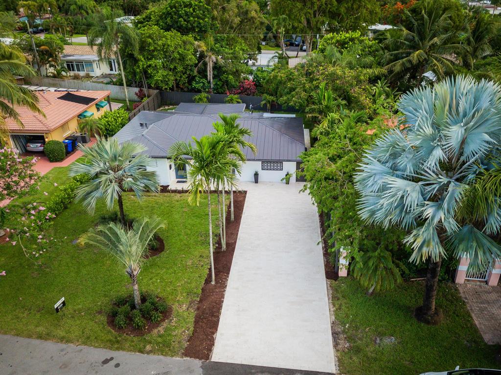 Poinsettia Heights - Renovated open concept, 3 Bedroom, 2 Bathroom pool home. Recent updates include metal roof, impact windows & doors, & coral shell paver driveway & patio. Large chef's kitchen with large breakfast bar, Kitchen Aid appliances, quartz counters, wine cooler. New interior features new 30'' porcelain tile flooring throughout, renovated bathrooms, recessed lighting, interior doors, baseboards & moldings. Updated electric. New central AC. Private fenced back yard, sprinkler system, new sod & landscape, gutters, interior & exterior paint, storage area.