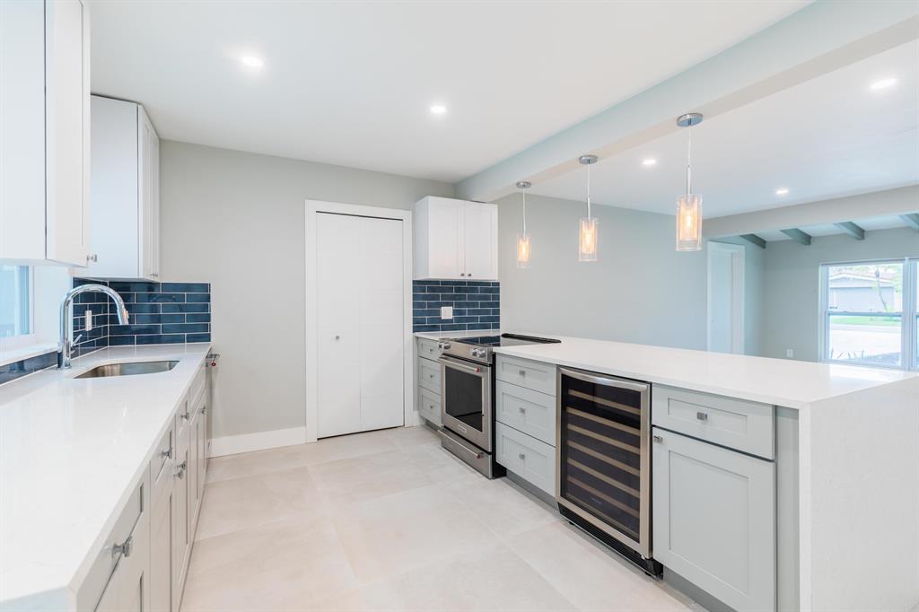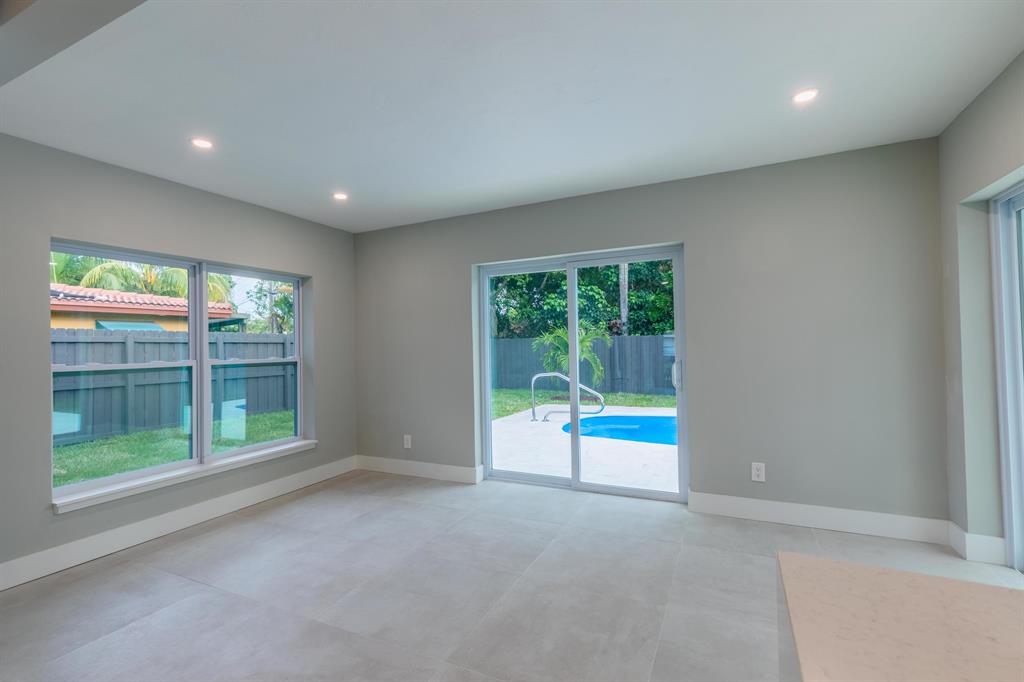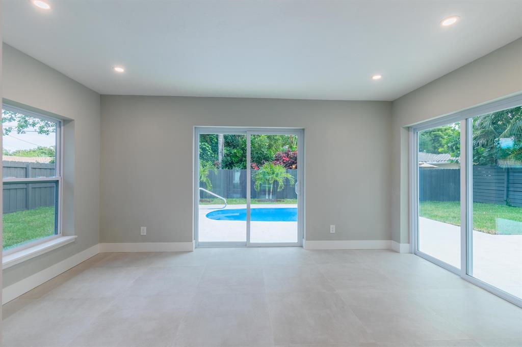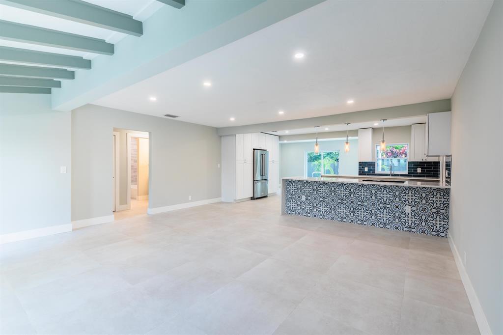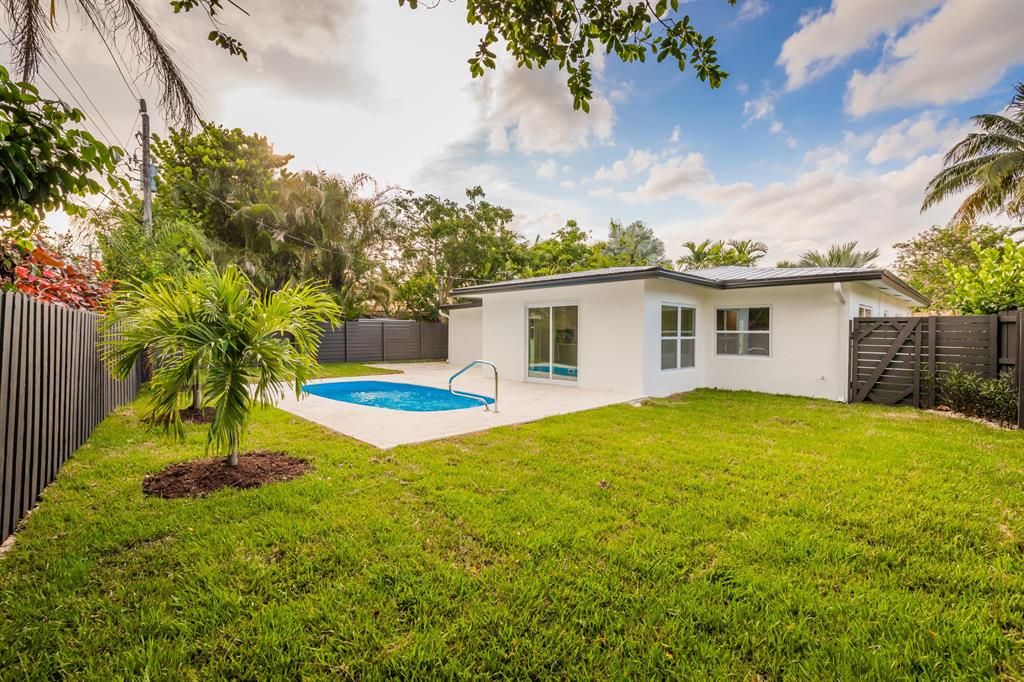 Poinsettia Heights - Renovated open concept, 3 Bedroom, 2 Bathroom pool home. Recent updates include metal roof, impact windows & doors, & coral shell paver driveway & patio. Large chef's kitchen with large breakfast bar, Kitchen Aid appliances, quartz counters, wine cooler. New interior features new 30'' porcelain tile flooring throughout, renovated bathrooms, recessed lighting, interior doors, baseboards & moldings. Updated electric. New central AC. Private fenced back yard, sprinkler system, new sod & landscape, gutters, interior & exterior paint, storage area.