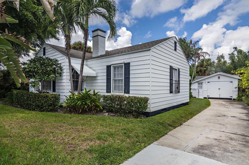 Charming 1940's 2 bedroom, 1 bathroom bungalow home plus 1 bedroom, 1 bathroom cottage and garage in the Old Northwood Historic District. Features include an entry room/den, large living room with bay window, a wood burning fireplace and heirloom random width Dade County pine hardwood flooring. The formal dining room looks out the covered porch and backyard. The updated kitchen offers a gas range/oven and black quartz counter tops. Both bedrooms have large closets and plenty of light. Exterior features include a detached 1 bedroom cottage, garage with workbenches and the property is fully fenced. The 8 x 26 covered back porch and open patio are perfect for entertaining and there's plenty of room for a pool. Convenient to downtown West Palm Beach attractions and minutes to the beach.