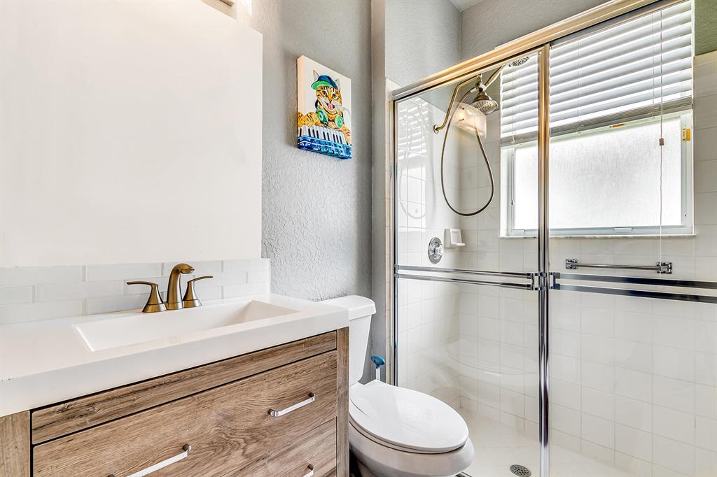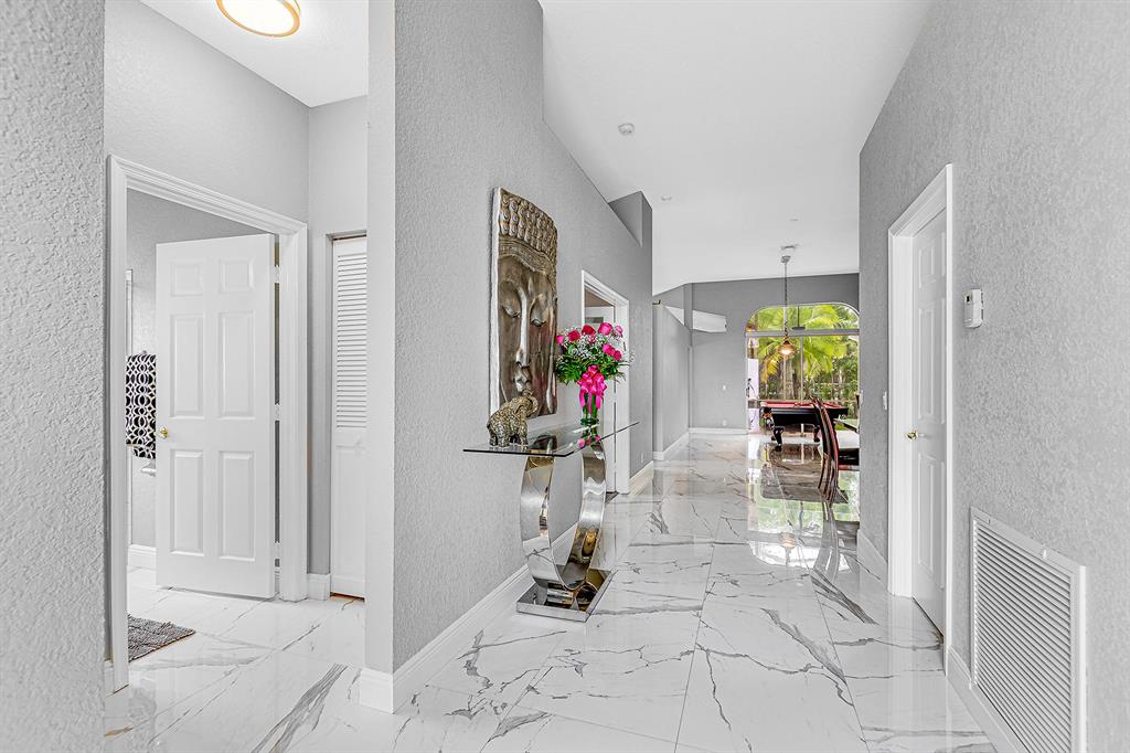 BACK ON MARKET! Don't let this gorgeous modern one story, concrete block 3 BR home get away again in the picturesque ''Hamptons''. Nestled in the guard gated community of Eagle Trace, you'll enjoy tennis, pool, jacuzzi + clubhouse without costly membership requirements. This 3 bedroom, 2 bathroom home w/ spacious 2 car garage has been upgraded w/ luxurious bathrooms, stainless appliances + granite countertops in the kitchen w/ real wood cabinets, custom hardwood flooring in the master bedroom, new washer/dryer, 2 yr hot water heater + fresh paint. Enjoy gathering w/ friends + family in the open kitchen, oversized family room w/ vaulted ceilings + large screened in patio. Easy access to Sawgrass Expressway, I-95, close to A+ schools, parks, restaurants + low HOA. Pickup trucks OK in garage.