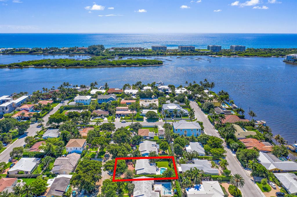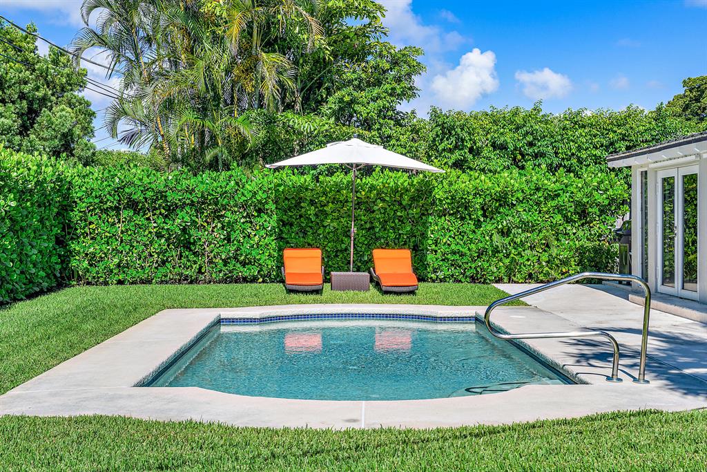 Gorgeous Mid-Century Modern gem in the highly desirable 'SoSo' neighborhood. Fabulous location; 3rd house in from Flagler Drive, a short bike ride to the Intracoastal Waterway. Features: renovated kitchen w/ island, beautifully updated bathroom, charming fireplace, Smart alarm/thermostat/lights, lots of natural light, hi-hat lighting, covered porch, gleaming Terrazzo flooring, windows/sliders are a combo of impact & shutters, doors incl. garage are impact, tile roof, natural gas, tankless water heater, 2017 AC, 2015/2016 appliances, 2 refrigerators, circular brick driveway, heated swimming pool, patio w/ pergola, irrigation system, gas grill, hookup for generator, backyard is private, totally fenced w/ lush landscaping. Minutes to downtown, beaches, Palm Beach Island/Worth Ave., ETC