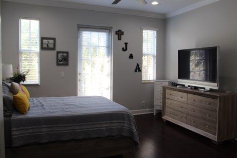 Beautiful and Spacious Ventura Greens townhouse! Features include: Italian Wood tile flooring throughout first floor. Living, kitchen, half bath & dinning area on main level. Kitchen features granite counters, Smudge Proof stainless steel refrigerator, black stainless steel microwave and dishwasher with 42'H cabinets, recessed lighting, high ceilings. Upstairs has real Bamboo Wood flooring. All 3 bedrooms have ceiling fans and balcony. Master bedroom has his and hers walk in closets. Deluxe master bathroom with roman tub, separate stand up shower and granite duel sinks. Crown molding throughout home. Laundry upstairs. High-Impact doors and windows. 1 car garage and room in the long brick paved driveway for two additional cars
