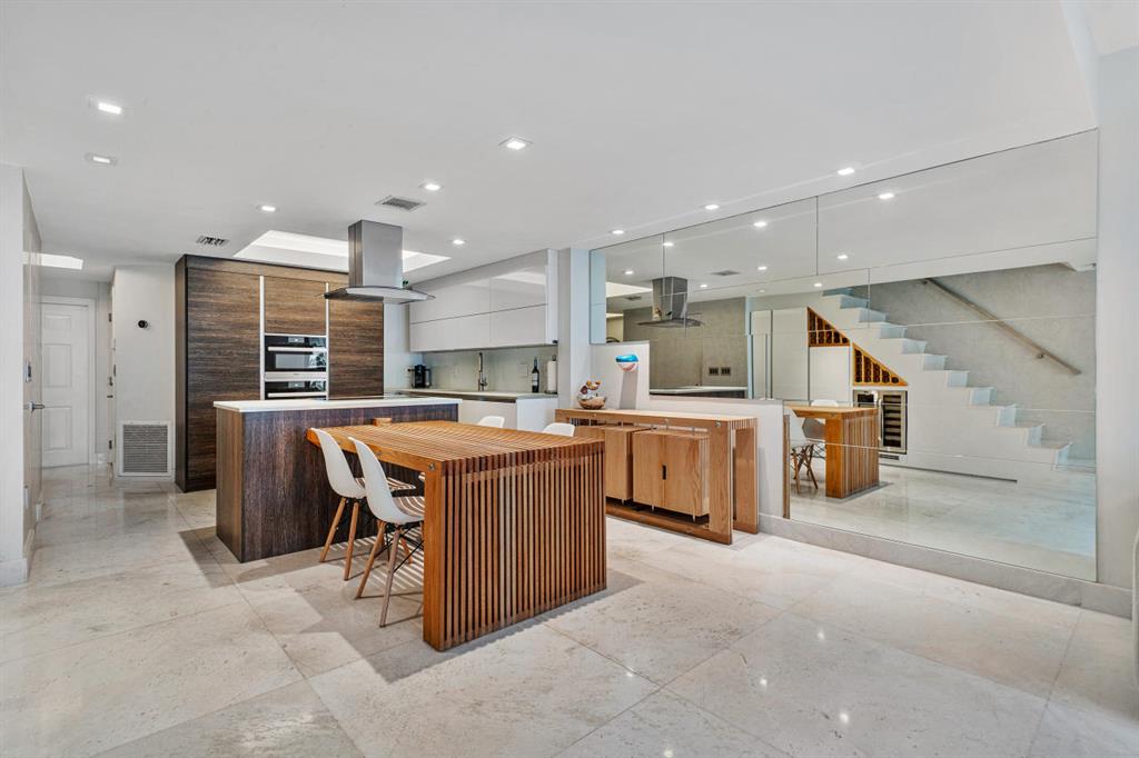 STUNNING and RARE Find in East Boca! This 3 bedroom/2.5 bath townhome has been beautifully custom designed featuring the most gorgeous OPEN kitchen with European white cabinetry electronically operated, Miele appliances, steam oven and induction cooktop with stainless steel range hood. Plenty of extra cabinetry in kitchen along with built-in wine fridge. Marble floors throughout downstairs and Marble staircase with glass railing. Brand new outdoor finished deck perfect for relaxing and entertaining conveniently located near pool. Oak wood floors upstairs along with all 3 bedrooms. Bathrooms have been renovated with Italian porcelain tile and Graff faucets. Kohler digital ''DTV'' shower system and large jacuzzi tub in master. 1 car garage with gladiator floor, impact glass throughout. Roof