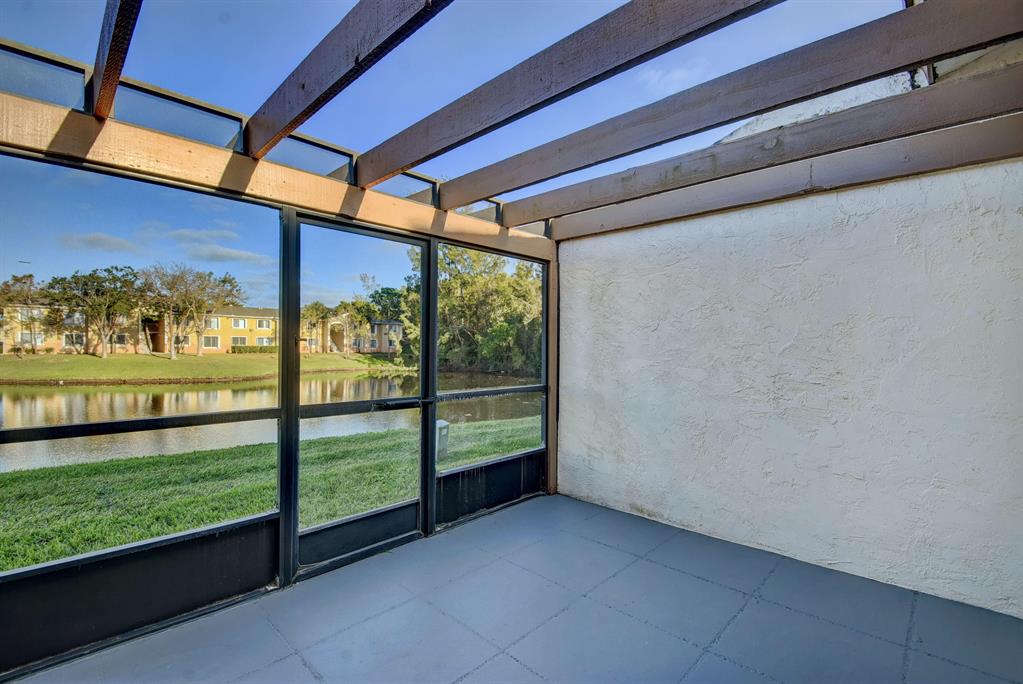 Nice waterfront 2/2 with enclosed loft that can be used as a 3rd bedroom or a bonus room. Recently painted a nice, light gray with a newly remodeled and upgraded kitchen; new cabinets, granite counters, stainless appliances. Very clean corner unit great for investor or first time homebuyer. Nice enclosed private front patio. 2 parking spaces right in front of the unit. Accordion Storm Shutters. Tile throughout; Vaulted ceilings; Enjoy peaceful evenings on your patio overlooking the pond or take a dip in the community pool which is steps away. HOA fee includes roof maintenance, exterior building maintenance, privacy fence, landscaping and community maintenance (pool, tennis courts, lake, etc). Quick closing possible.