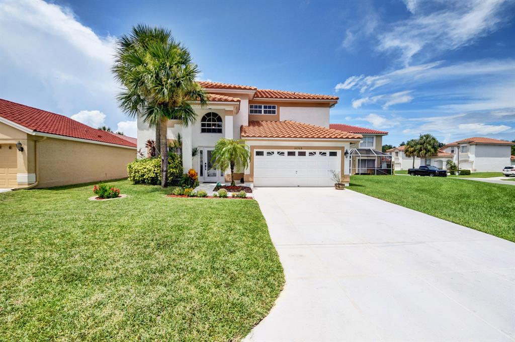 Live life more beautifully in this fabulous home located in the desirable Boca Chase community. Beautifully situated and with mature landscaping, designer details include two-story entry, ceramic tile, upper-level with wood-laminate flooring, and contemporary open-concept floorplan. Eat-in kitchen features large bay window, granite counters, stainless steel appliances, and large seated peninsula bar. Spectacular owner's suite includes en suite bath with marble double vanity, custom tilework, corner tub, and large step-in shower with frameless glass door. Lanai offers plenty of space for outdoor seating, dining, and entertaining. Boca Chase amenities include basketball court, clubhouse with pool and tennis. Excellent location close to schools and local parks and recreation facilities.
