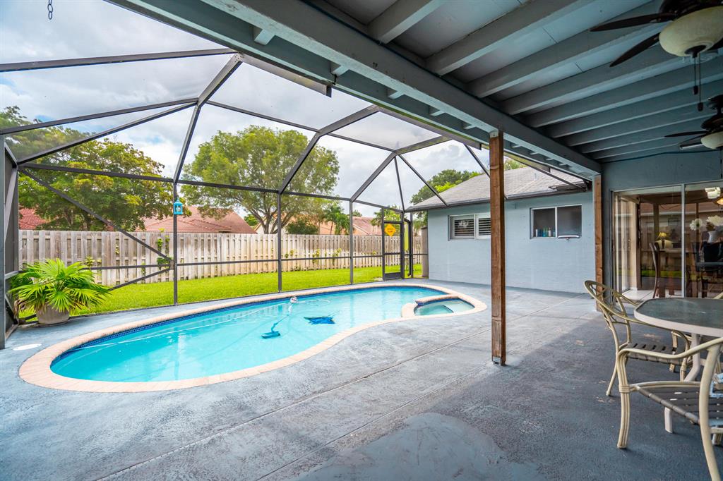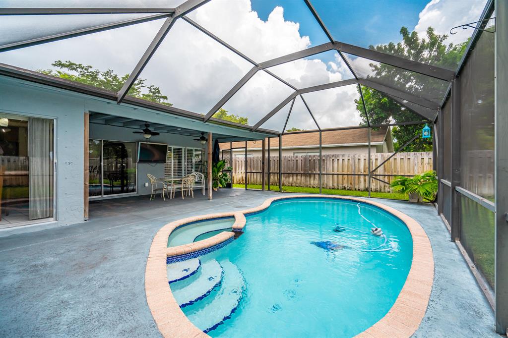 Beautiful 4/2 2-car garage Single family home with private screened-in pool on a cul-de-sac. no HOA. Plantation shutters throughout, open kitchen and family room. Extra space to play in the over-sized backyard. House backs up to private street for more privacy. Also huge front yard with plenty of room for expansion. All bedrooms are very good size with new laminate flooring. Home has been maintained very well and ready to make your own. Literally seconds away to ''The ''Walk of Coral Springs'' restaurant and shops, plus other great dining in the area.