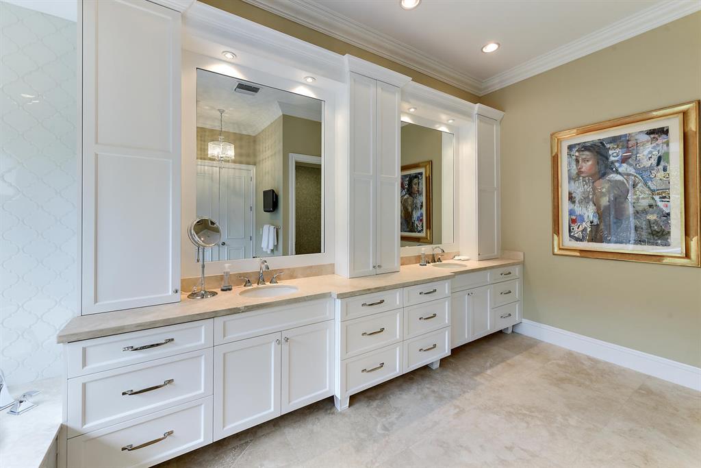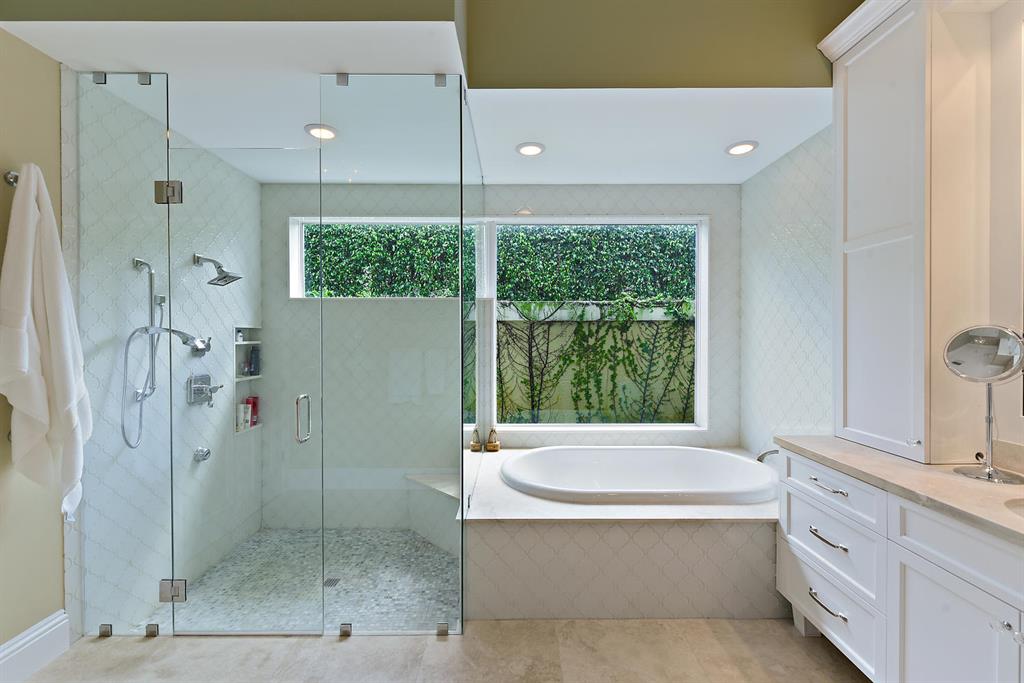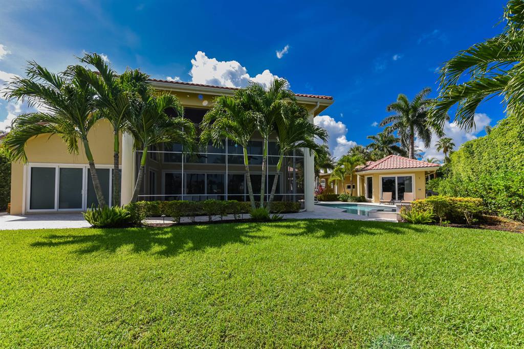 This exceptionally renovated one story lake front home offers sensational views from every major room in the house. A tropically landscaped circular driveway leads to a gated courtyard entry, the main home, a two and one half car garage and separate office or guesthouse with an en suite bath and kitchenette. Expansive openness and tasteful decor is evident from the entry foyer, with soaring two story ceilings, floor to ceiling glass, extraordinary rich Brazilian hardwood floors, custom coffered ceilings and large expansive impact glass windows. Main house has a full master bedroom suite, and two additional bedrooms. An open pool with spa, a marble paver patio with open BBQ, and a screen enclosed two story covered patio all overlook serene lake vistas. See More..