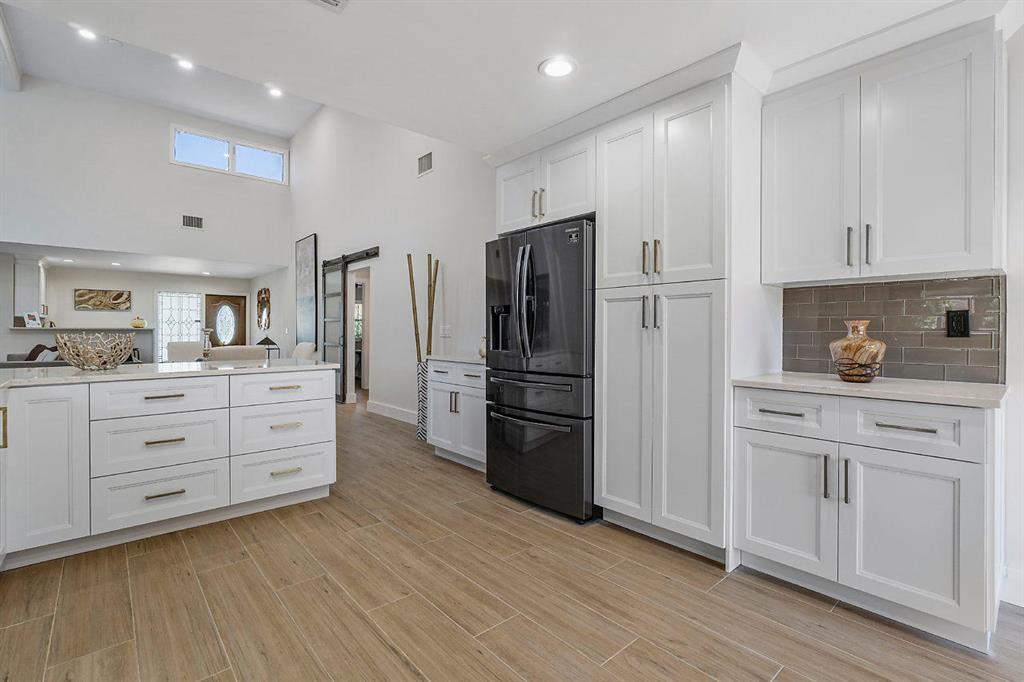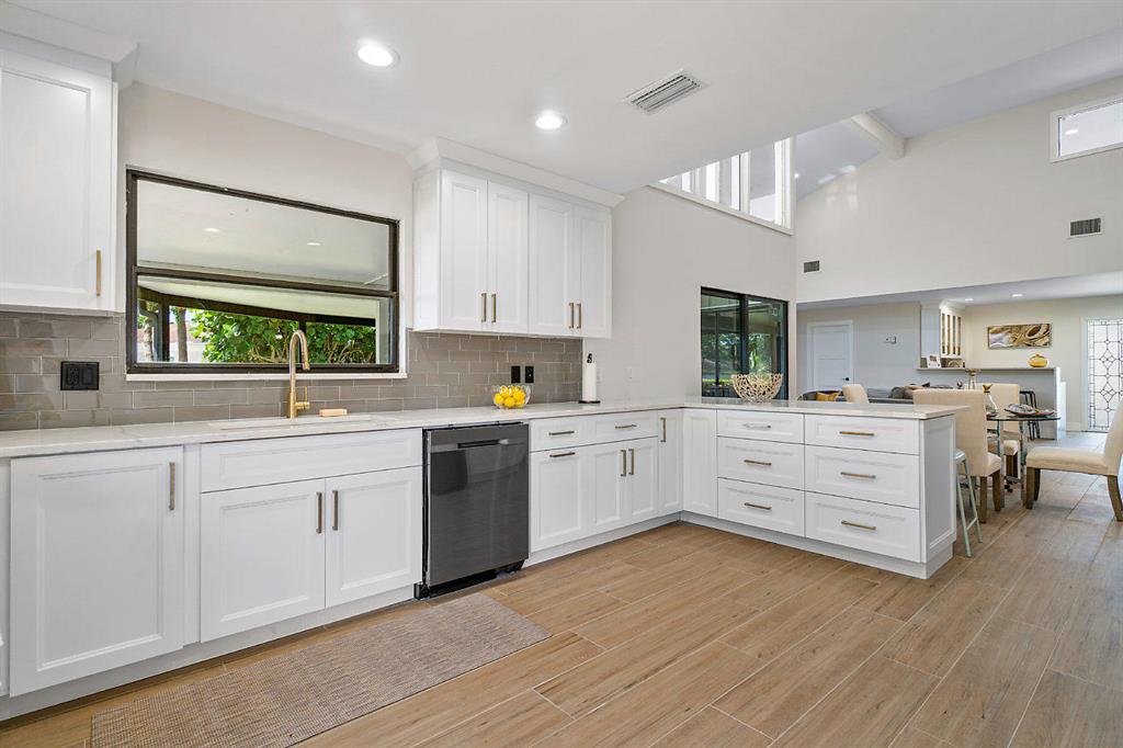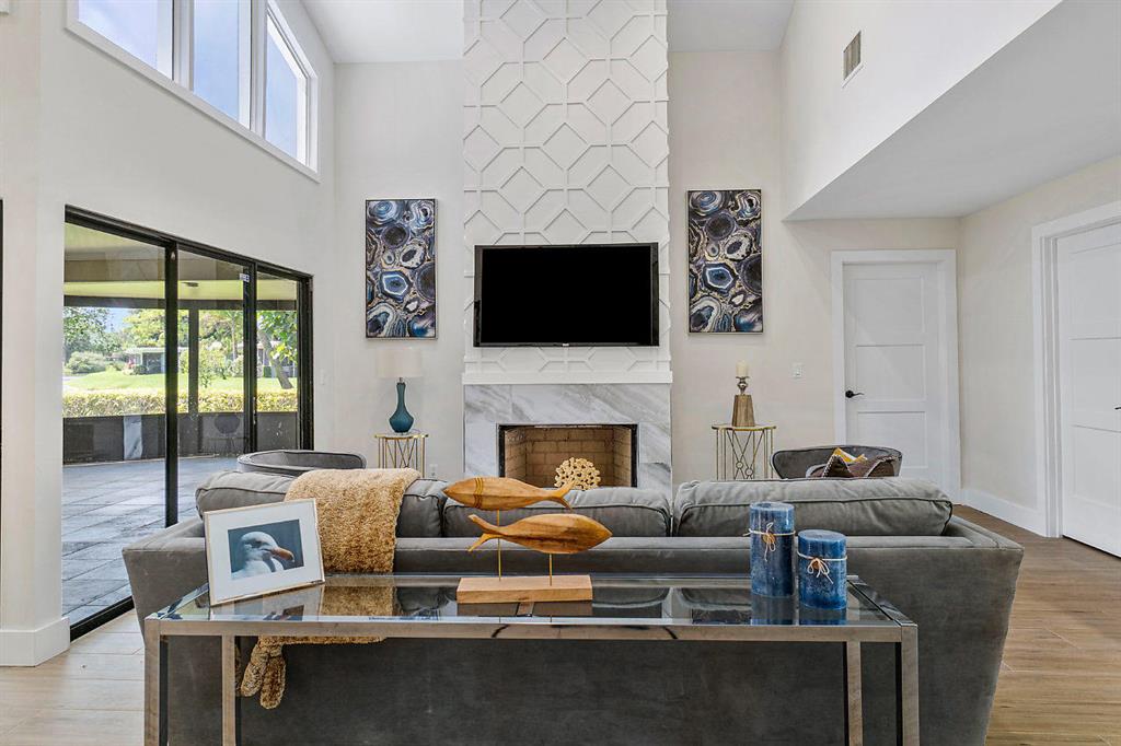 Newly renovated 3 bedroom, 2 bath home in Eastpointe. Gorgeous water views from everywhere in the home! High ceilings and amazing natural light! Brand new roof installed July 2020. Big open kitchen features all new Samsung black stainless appliances, soft close cabinetry and white quartz counter tops throughout. ''Wood Look'' porcelain tile flooring in all living areas and bedrooms. Wood Burning Fireplace with decorative wall paneling is the focal point of the living room. Newly built wet bar makes a great space for entertaining. Large screened patio offers waterfront views and plenty of space for furniture, television, refrigerator, grill etc. Call for your private showing today!New Front Double Doors being installed by 7/15Washer/Dryer do not convey with sale of home