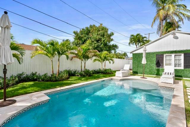 Fabulous 1940 Monterrey Colonial in the heart of the West Palm Beach historical district. Recently renovated to perfection with unexpected interior designer details, this light filled home has high end wallpaper, and gleaming hard wood, wool carpet and marble floors throughout. The Chef's kitchen boasts Viking, Bosche and Smeg appliances, custom cabinetry and marble countertops. This 3 bedroom/ 2.5 bath home is situated close to Palm Beach Island and Downtown West Palm Beach, shopping and fine dining. Additional features include a garage, new doors and sliders , new tankless hot water heater, new HVAC, lushly landscaped back yard with a salt water pool.