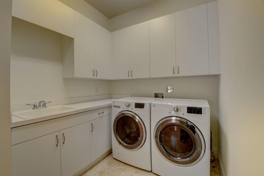 Breathtaking 6 BD/5 BA/2 HB + office home with an idyllic pool and lakeview. Each bedroom has an ensuite bath. Enough space for everyone! First story has a gas fireplace; a full wet bar great for entertaining with a beverage refrigerator and sink; the office with beautiful hardwood floors; and 2 of the 6 bedrooms, one of which has a cabana bath. The kitchen is furnished with two ovens, a gas stove with 5 burners, plenty of storage, breakfast nook and desk space.The second story has two lofts that overlook the living room. Space for a second washer and dryer hookup. Currently set up as a media room, the first of the four upstairs bedrooms has a sitting area or bar and an en-suite half bath.