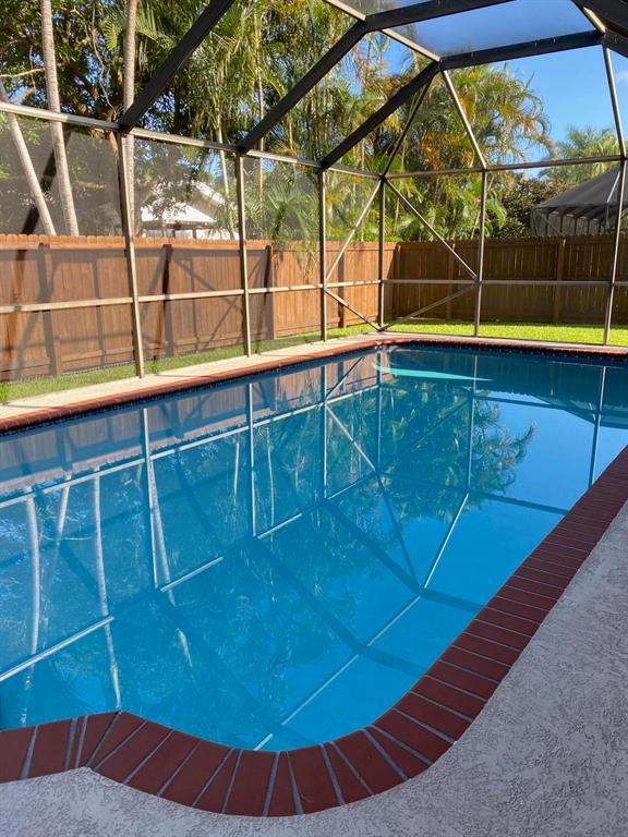 Perfectly located and updated 3 bedroom 2 bath 2 car garage residence with private screened pool and large covered patio. Updated stunning kitchen with granite countertops, S/S appliances and full-size pantry. Spacious and bright open floorplan with large family room and gorgeous light maple flooring throughout. Roof new in 2018. Hurricane impact windows. Generous closet space. No carpet and no popcorn. Pool and Kool decking renovated in 2019. Upgraded paved driveway, hurricane garage door, A/C, Water Heater and solar pool heater. Fenced yard with custom gates. 8'x8' Deck off kitchen. Gutters new in 2019. Lush landscaping with mature shade trees and tropical plants including plantain tree. Hurricane panels for sliding doors and impact windows. Low HOA, security patrol and A-rated schools.
