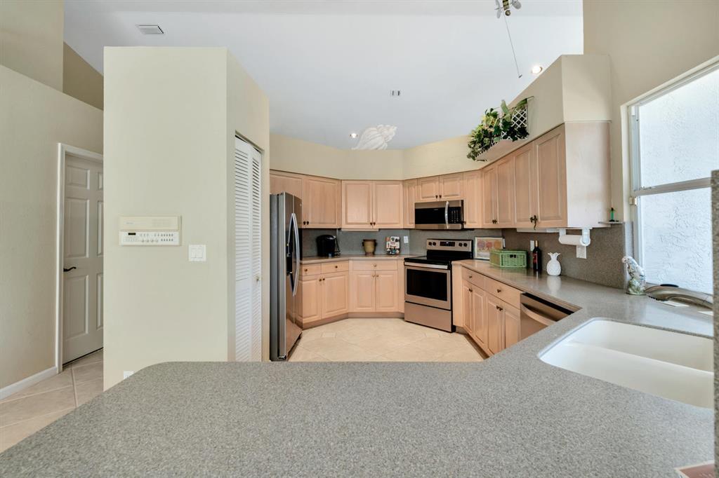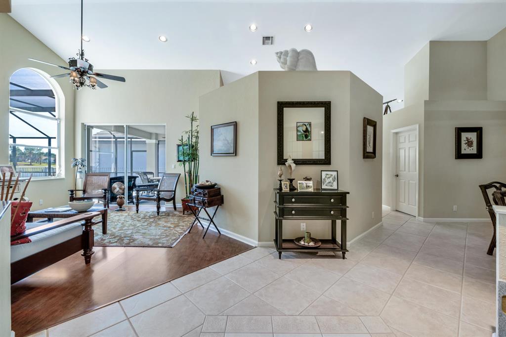 Country Club living in the upscale gated community of Ironhorse located along the unspoiled Grassy Waters Preserve. Situated on the 9th tee this 3 bedroom 2.5 bath, 2.5 car garage pool/spa home is a golfers dream. Full golf membership valued at $15,000 is transferable at no charge. Total Sq Ft. 3,080, Living Sq Ft 2,092, Lot measures 133 x 55. Large paver driveway leads to walkway and covered exterior foyer with lighting. Double door entry to interior foyer. Recessed lighting throughout. Ceiling fans throughout Golf course and pool views.Formal living room has volume ceilings with ceiling fan, views of pool and golf course and sliders to covered lanai and pool area. Kitchen has new stainless steel appliances, double undermount sink, counter bar and wood cabinetry.