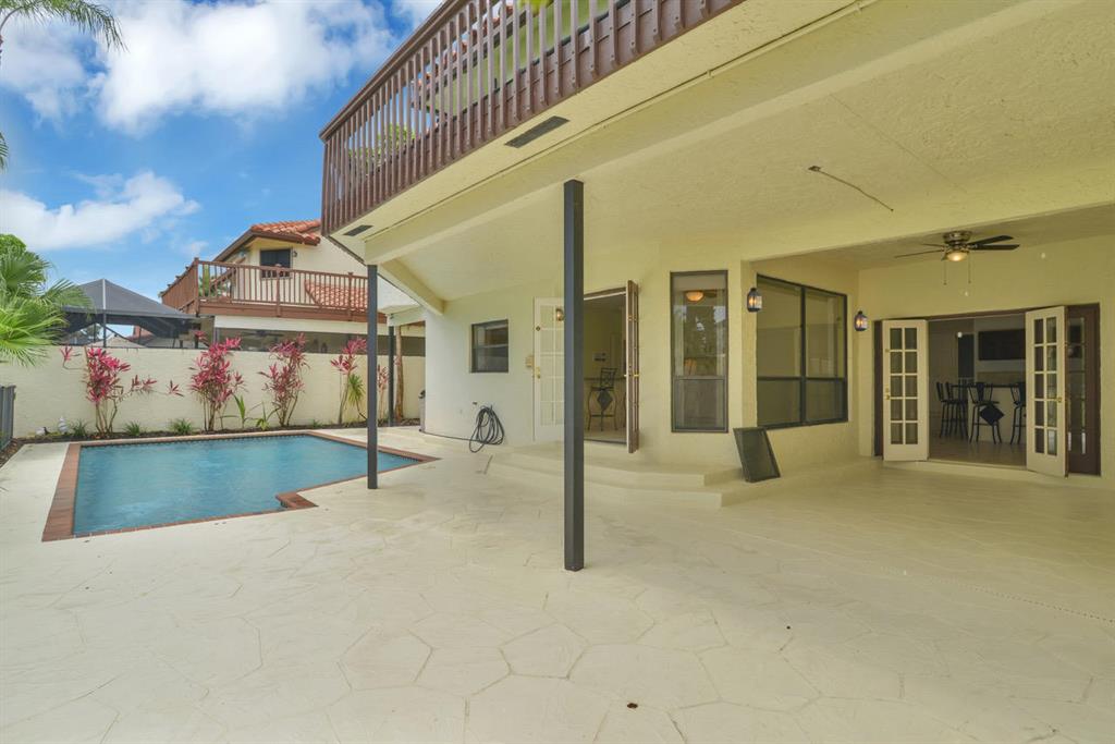 Welcome to fabulous Boca Pointe, a country club life style without membership equity fees. Move right into this newly updated immaculate home. First floor features include a grand 2 story entrance, beautiful living room with floor to ceiling windows & elegant dining room. A home office or 5th bedroom, family room with bar, fireplace and french doors to pool patio. Spacious kitchen with center island, granite counters, stainless appliances and breakfast nook overlooking pool patio and lake. Cabana bath, laundry room and 2 car garage with new epoxy floor. Second floor features a beautiful hallway bridge overlooking lower level. Split floor plan lends plenty of privacy in the master suite with high ceilings, fireplace, French doors to a large balcony with pool a