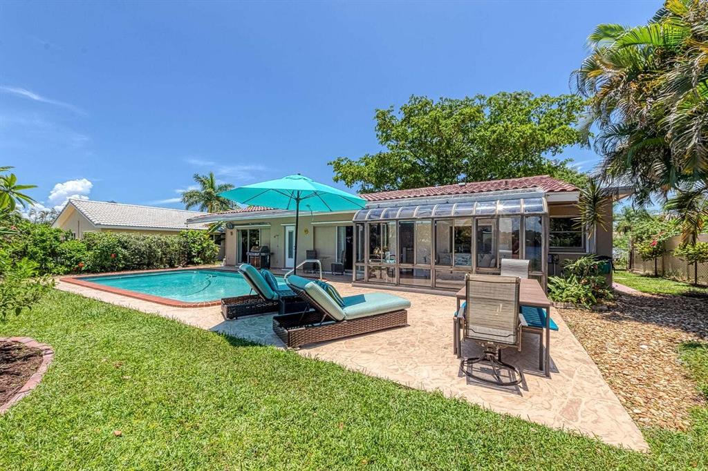 Rarely available east Boca property on wide view on east Boca's largest lake. New HEATED saltwater pool! Indigenous plants create a spectacular waterfront lifestyle and scenery. Interior laundry room. Combination of impact glass and accordion shutters. Glass enclosed solarium is the perfect respite to enjoy pool and lake views. 1 car garage on a quiet street. Walking distance to Boca's favorite elementary school. Just over 2 miles to Boca Raton beaches and waterfront restaurant. Many shops and restaurants approximately 1 mile from home. Large lot allows expansion . Electrical panel and A/C replaced.