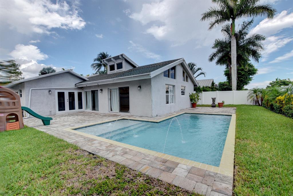 Beautiful 3/2 house centrally located in Boca Raton. This contemporary family home features porcelain tile floors throughout with wood looking porcelain floors in the bedrooms, a fully remodelled high-end porcelain [main] bathroom, marble design en-suite bathroom, European style laminate doors and Krion countertops (solid surface) with a glass backsplash in the kitchen, The house also offers a new tankless water heater, fresh paint job, impact windows &doors(with the exception of a few windows)Carrier brand AC unit with UV lights installed in 2018, a new pool with salt chlorinated system, stainless steel appliances, a heavy duty washer and dryer, custom-made blinds, recently built white fence in the backyard, and new stucco with customized stones in the front.Great school district. LOW HOA