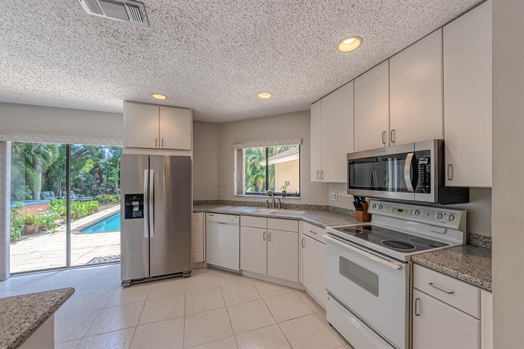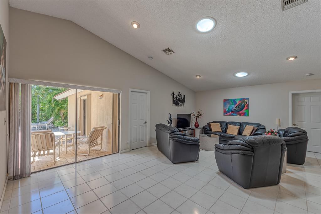 Great layout. 3 way bed rm split. Very private & tropical pool area. Large pool. Great for swimming laps. Free standing Hot Tub. Huge patio. Eat in Kitchen with Etura counter tops w/ breakfast bar area. Home is light & bright. The 4th bed rm is approx 381/sf & was added on in 2014. 4th bed rm is being used as a music room/den. Has a closet. Master bath rm was tastefully remodeled in 2019. A/C 2014. New disposal. Inside Washer/Dryer . Vaulted ceilings. Cabana Bath. White Tile throughout the living , dinning, kitchen & 4th bed rm. Accordion shutters on all windows. End of a Cul De Sac. Big size lot almost 10,000/sf. Owners have kept this home up. Walking distance to Verde Elementary. In Omni Middle & Spanish River High district. Walk to the Town Center mall, shopping & restaurants.