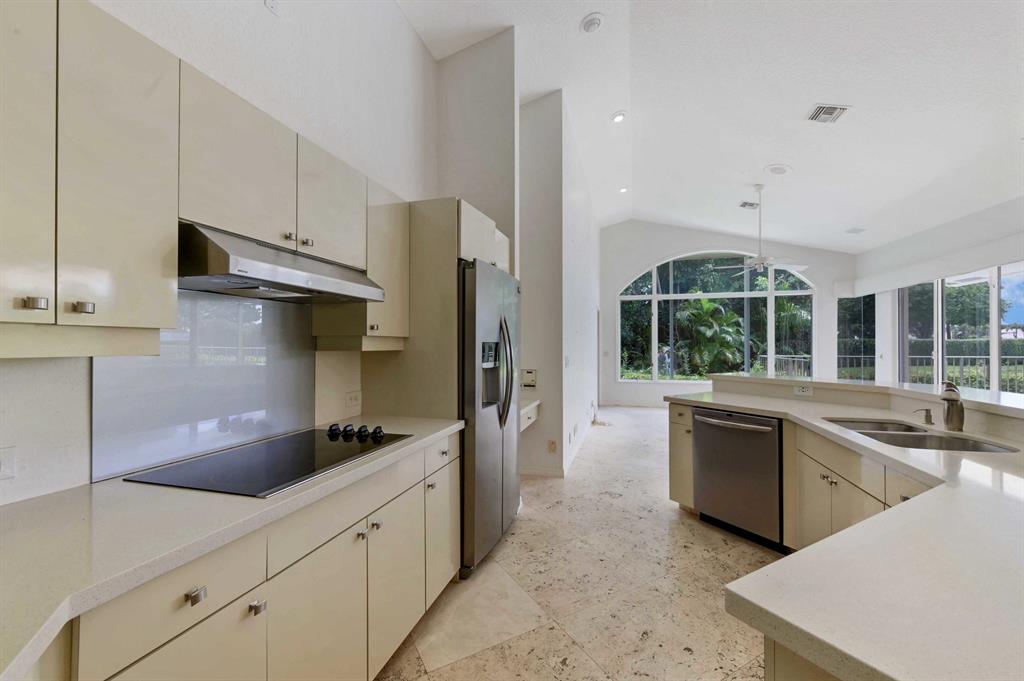 Lovelylight and bright one story custom home on a large cul-de-sac lot with dazzling lake views. This 4 bedroom 3 bath lakefront home features high volume ceilings, Saturnia marble floors, large windows & plantation shutters. kitchen partially updated with stainless steel appliances and quartz counters. Crown molding & high hats throughout. Great opportunity for updating or new build.
