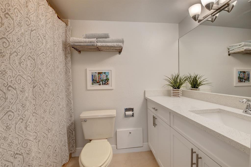 Immaculate fully remodeled home in prime location in Boca Rio North. Enter the private courtyard to new professionally installed brick pavers- a great venue for entertaining. Tiled throughout, remodeled kitchen w/white shaker cabinets, quartz counters, SS appliances, LED recessed lights, under cabinet lighting. Plantation shutters in family room and master bedroom, full size washer/dryer downstairs, hot water heater 2018, freshly painted in light neutral tones. All bathrooms (2 ensuite) have been remodeled. Prized location in the community overlooking expansive grassy area, far from roads or noise. Very private site w/lots of play area. Pet friendly. Steps from elementary school. This section has a lower HOA fee!- includes bldg insurance, roof, pool, tennis & racquetball.
