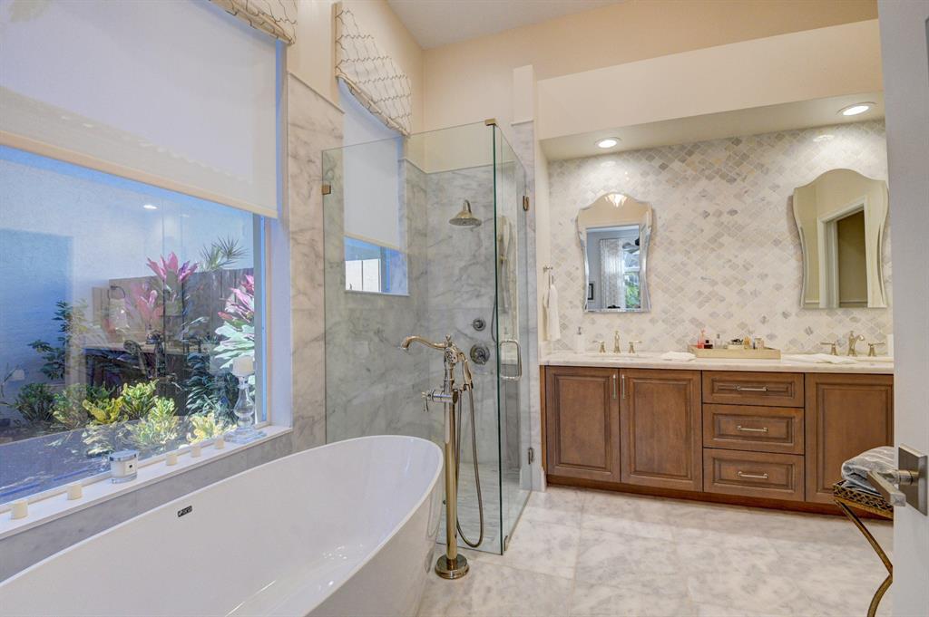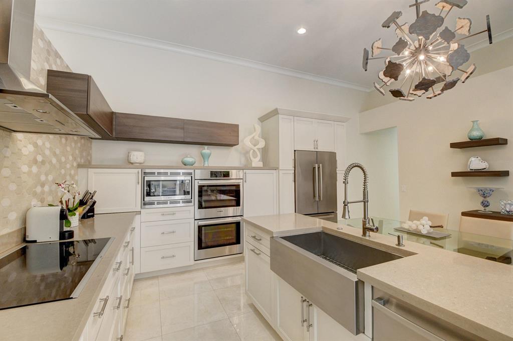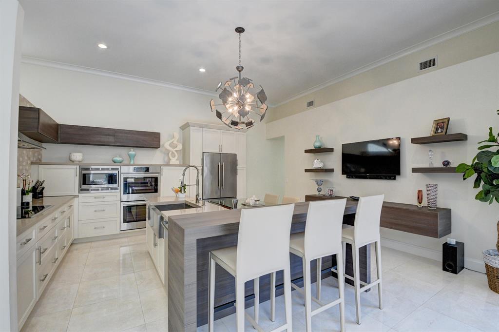 Welcome to one of the very few COMPLETELY REMODELED homes in the award-winning club of Broken Sound - it will take your breath away! Step into this bright unit with high ceilings, tons of natural light, and the most gorgeous contemporary kitchen! Complete with quartz countertops, fabulous waterfall breakfast bar, oversized stainless sink, custom tile backsplash, and double ovens, the kitchen opens up to the entire living area. Beautiful large 24'' cream marble floors in the main living areas guide you to the incredibly impressive master bedroom. Luxury awaits with 2 fitted walk-in closets, wood floors, master bathroom with free standing marble tub, frameless shower, marble bathroom floors, and