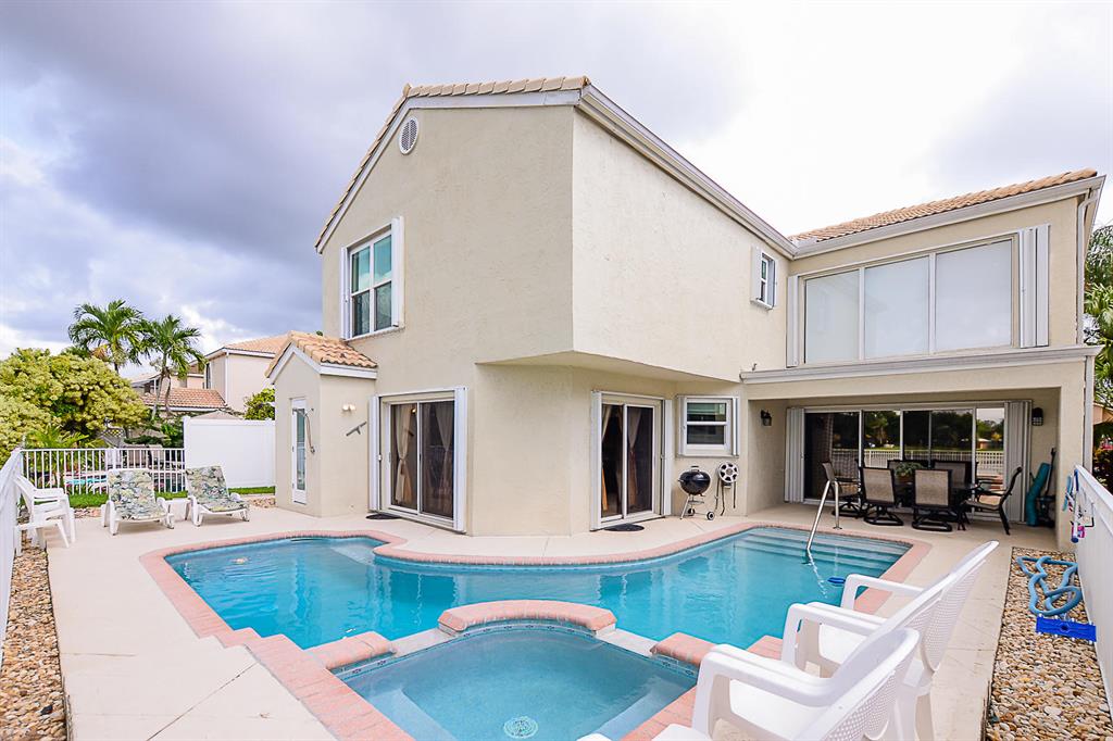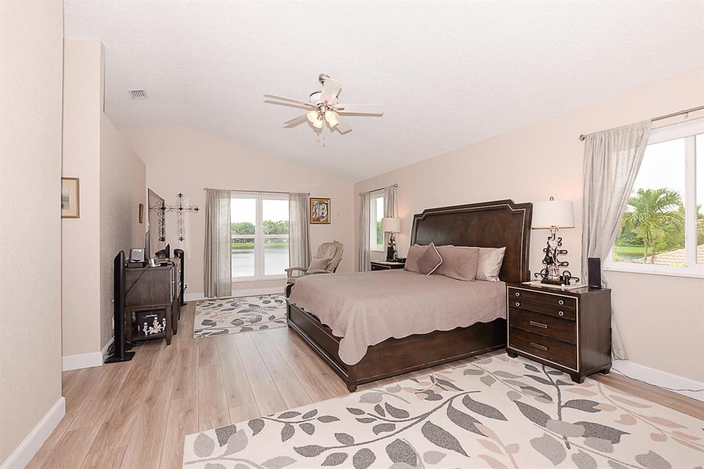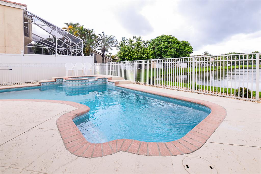 Gorgeous, fully upgraded, huge one of a kind 2 story 5 bedroom, 4 1/2 bath pool home with a breathtaking lake view in a sought after gated community. The kitchen has granite and all stainless steel appliances, double oven, Brand new fridge, with built-ins. 3 of five bedrooms have their own on-suites. Formal living and dinning room, One bedroom with on-suite is on first level, Newly resurfaced pool with gas heater (Not connected) and cabana bath. Outside shower .Master bedroom on second level with lake view and huge walk-in closet , All windows overlooking lake have impact and hurricane shutters throughout the house. Brand new Garage door. Community pool and tennis courts. One time, nonrefundable $2,500 capital contribution.