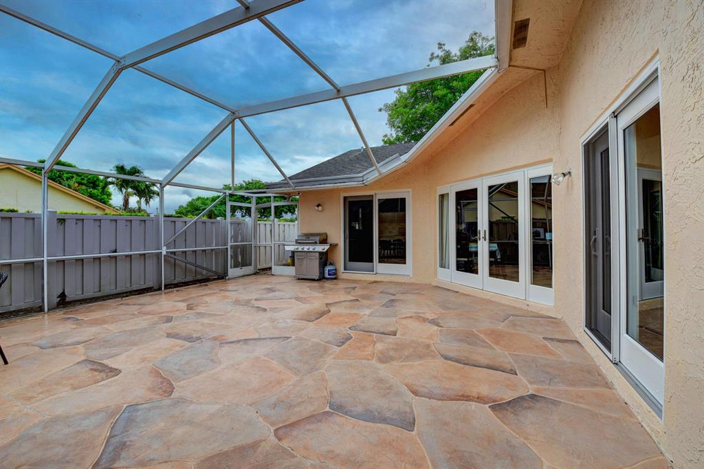 Outstanding corner villa ready to move in featuring LED lighting, a Lorex 8 camera wired home security system, Ring Doorbell and home alarm system, a Nest thermostat, full impact windows and doors, an open floorplan with lots of natural light, an upgraded kitchen with SS appliances, tile and wood floors throughout, a newly renovated custom master bathroom, custom closets in all the bedrooms, a laundry room, large screened patio with shed included and room for a pool and beautiful custom landscaping around the home done by the homeowner. Boca Gardens features 3 pools and tennis courts and is located in an A rated school district close to major roads, shopping and dining. Don't miss this one!