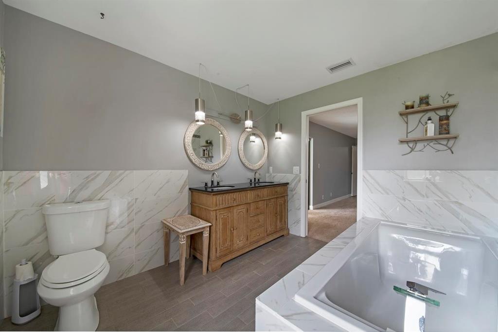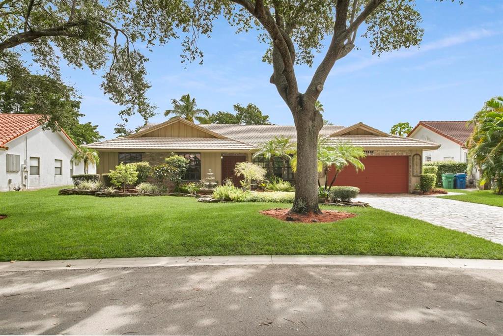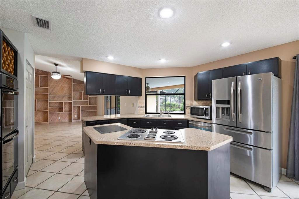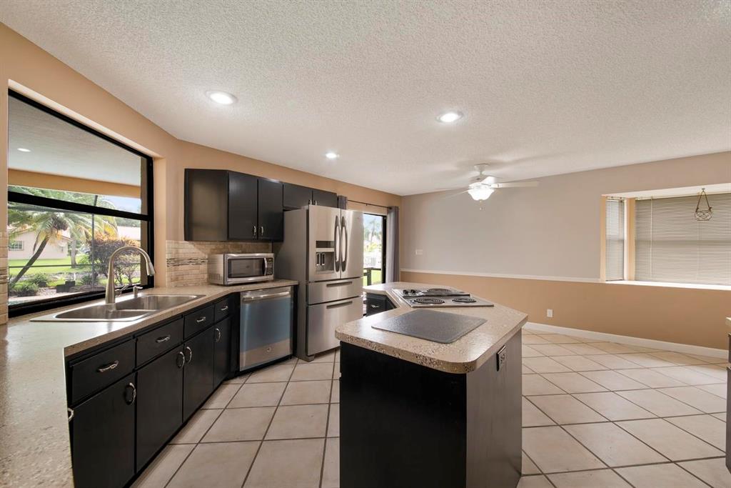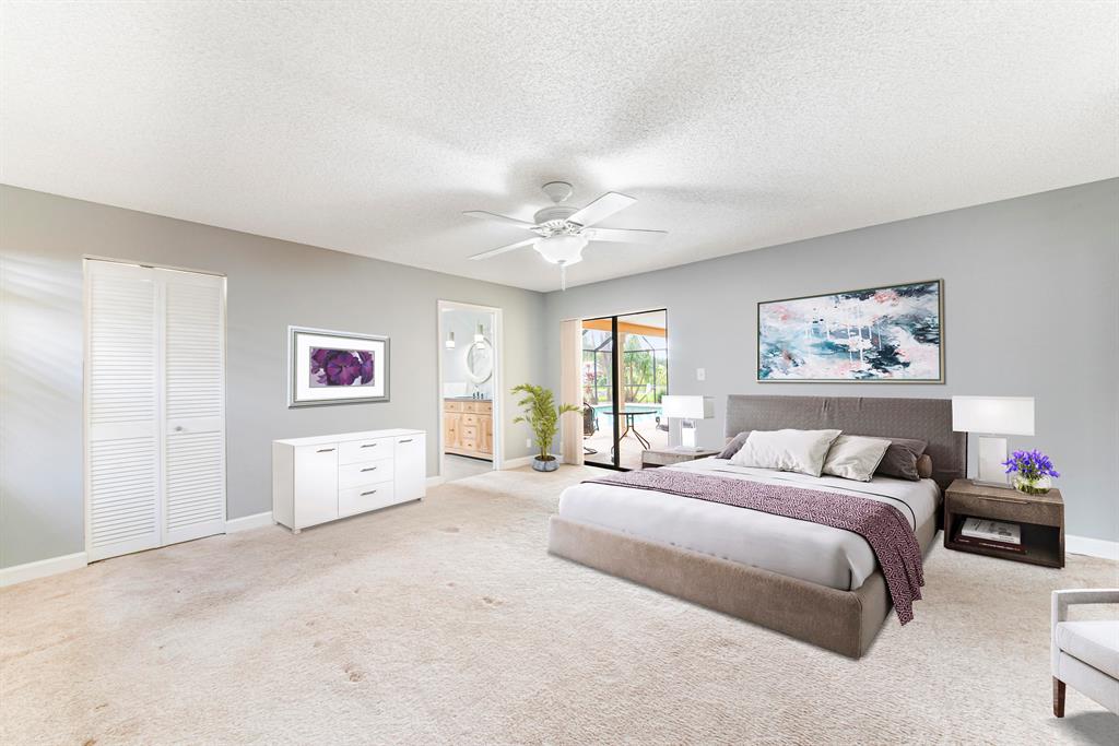 Peace and tranquility abound in this tropical oasis with 4 bedrooms and 2 baths water front home with NO HOA. Entertain in style with a living room, dining area and a patio. The dream kitchen features tiled backsplash, a double oven, center island and a breakfast nook. The main retreat boasts a slider to the patio, a walk in closet, double sinks, soaking tub and a walk-in shower. Enjoy your own tropical paradise in the large private yard with a covered patio, a screen enclosed pool and a serene lake view. Neutral flooring, vaulted ceilings, high hat lighting and an abundance of natural light are just a few of many highlights in this stunning home. Located close to shopping, dining, entertainment, schools and major highways.