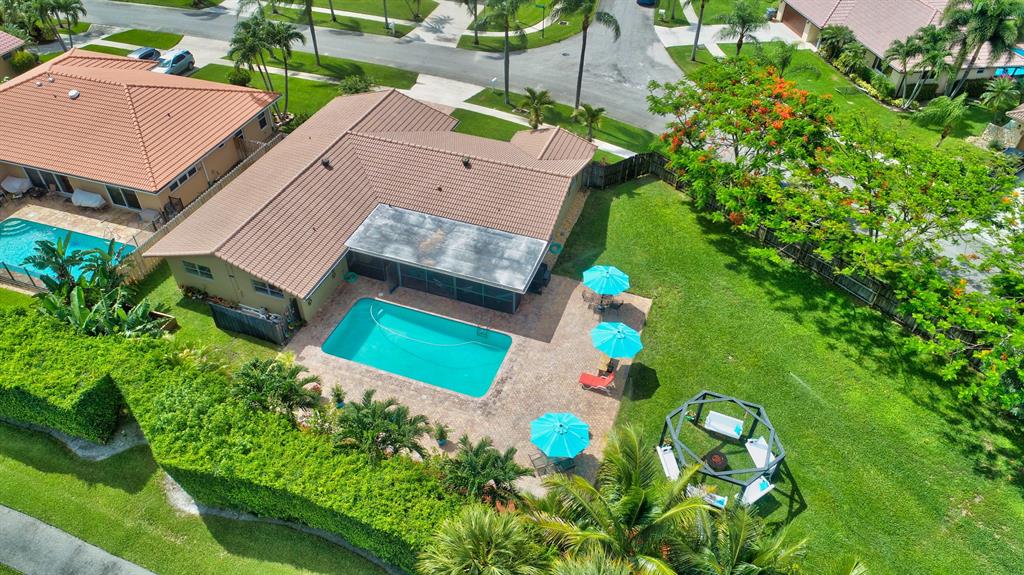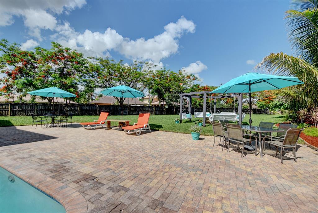 HIGHEST & BEST OFFERS DUE 6/14 @ 10am. No Showings Friday. Only available showing time Sat. only 11-1pm. The magic begins with the entry to this Mediterranean style home. Walk through the beautifully landscaped yard to the open covered porch and arched entry way to the front door. A large foyer opens to the living room filled with natural light from three large custom windows. A home built for entertaining both inside and outside, this home has a formal dining/family room, an additional dining area, pool, an open patio, a pass through to the enclosed patio and bar, pergola with fire pit in the oversize 1/3rd Acre lot with mango and banana trees and a raised bed for flower or vegetable gardening. The kitchen features white cabinets, stainless steel appliances and new quartz countertops