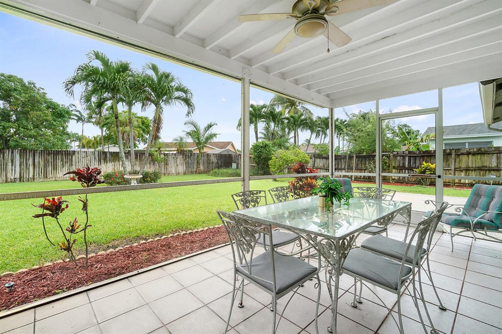 Lovely home on huge cul-de-sac lot. Walking distance to Boca Dunes Golf & Country Club (no membership required). Eat-in kitchen. Large living room looking out to the screened/covered patio and yard. 2 car garage. Two zone (split) air conditioning. Large walk in closet and cabana bath in the master suite. Security system. Accordion hurricane shutters(very easy to close up the house). Top rated Boca Raton schools. Do not hesitate on this one!
