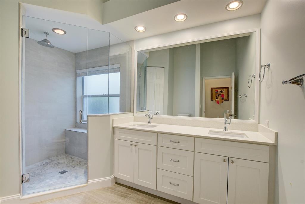 EXCEPTIONAL,COASTAL DESIGN, COMPLETELY REMODELED SINGLE FAMILY HOME OFFERING 3 BEDROOMS, 2.5 BATHS, & ''BONUS'' ROOM WHICH CAN EASILY SERVE AS AN OFFICE, FAMILY ROOM, BEDROOM, OR HOME GYM. THIS STUNNING RESIDENCE FEATURES A BRIGHT OPEN FLOOR PLAN, NOT COMMON IN THIS COMMUNITY. A STUNNING KITCHEN WITH SLEEK CUSTOM WHITE CABINETRY, QUARTZ COUNTERS, & GLASS TILE BACK SPLASH. PORCELAIN TILE THROUGHOUT LIVING AREA. SOARING 22' CEILINGS ACCENTED BY RECESSED LED LIGHTING IN LIVING ROOM. LOVE THE ''BONUS'' ROOM WITH ITS MODERN BUILT-INS. STUNNING MAIN LEVEL REMODELED MASTER SUITE. OVER SIZED SPA-LIKE SHOWER, DUEL SHOWER HEADS & BENCH. TWO ADDITIONAL LARGE BEDROOMS & UPDATED JACK N JILL BATH ON SECOND LEVEL. LARGE PRIVATE CORNER LOT. SCREENED PATIO & ROOM FOR POOL.