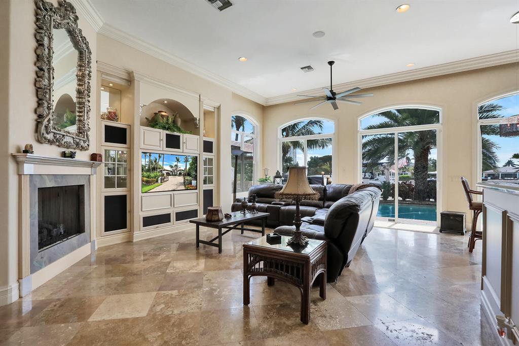 MAGNIFICENT! 3BR/3.1BA WATERFRONT ESTATE ON 75FT DIRECT INTRACOASTAL. Beautifully crafted home where upon entry you're met by elegant formal living & dining rooms. Grand rotunda, soaring ceilings and walls of glass take center stage as you cross through to the open concept living area featuring gourmet kitchen w/breakfast area & family room overlooking pool & spa, dock & intracoastal. Split BR floor plan boasts 2 masters both ensuite, & 3rd bedroom/ cabana bath. Working fireplaces, marble flooring & detailed moulding add to the elegance. Your private, outdoor oasis features pool/spa, summer kitchen, 14,000 lb boat lift, & fully stocked Koi Pond. Circular, gated motor court rounds out the stately presentation of the home. Impact glass throughout/whole house generator for full protection.