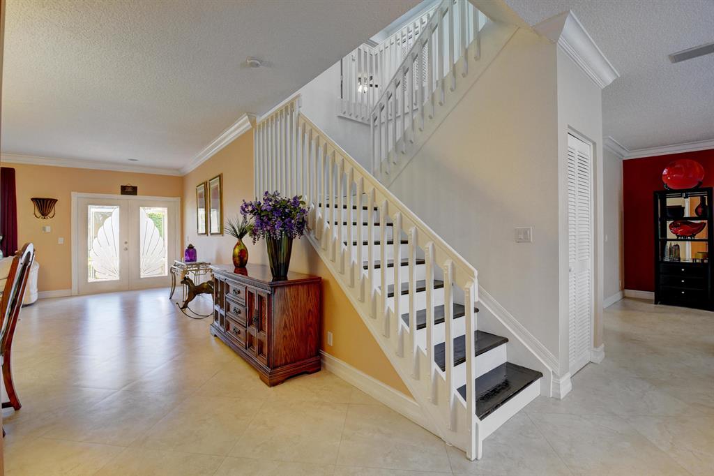 Totally updated Ocean Grande model. Enter this fabulous home through etched double front doors.Expanded kitchen features granite countertops and backsplash and a large island with sink, disposal, wine refrigeraor and electric. Double Thermador convection wall ovens,Thermador cooktop with stainless steel exhaust hood and Bosch dishwaher. Main floor has 24x24 tile on diagonal, 5 1/2 inch baseboards & 8in. crown moldings. Total reno on 2nd fl. in 2020., flooring, bathrooms and ceiling fans. Master has siitting room with private balcony & 2 walk in closets, Central vac,, NO POPCORN, NO CARPETS, Accordion shutters,newer roof. Oversized pool & spa and huge rescreened cage, up to new code. Enjoy Boca Isles resort style living. All schools A rated, Best shopping and restaurants nearby. Must see