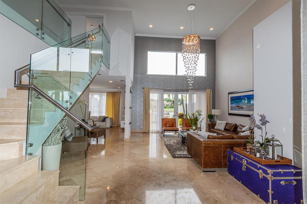 Enjoy the most spectacular panoramic Lake and Golf Course view at the magnificent subdivision of Stratford in the Woodfield Country Club. Tastefully upgraded this house is 5 Bedroom, 3.5 Bath, 2-story featuring: High ceilings, marble floor, an elegant glass stair railing, marble countertops in a modern kitchen, two bedrooms on the first floor and Three on the second. Upstairs there is a double door to the Masters suite which enjoys a breathtaking view of the Lake and Golf course, plus two more additional bedrooms. Outside is the ideal spot for watching the sunset and entertaining guests with its fully equipped BBQ station and a Pool perfect for relaxing after a long day at the golf course. This is a home so well designed and located that it is a must see. Please call for an appointment.
